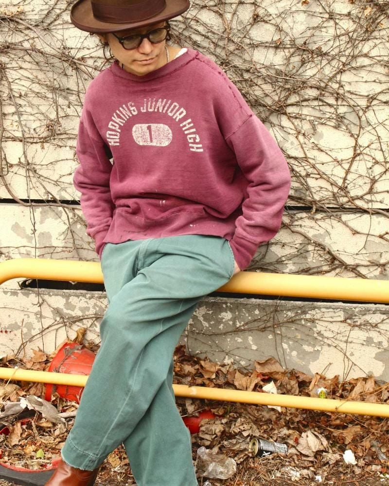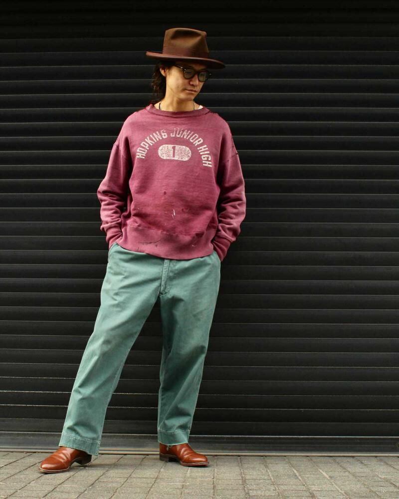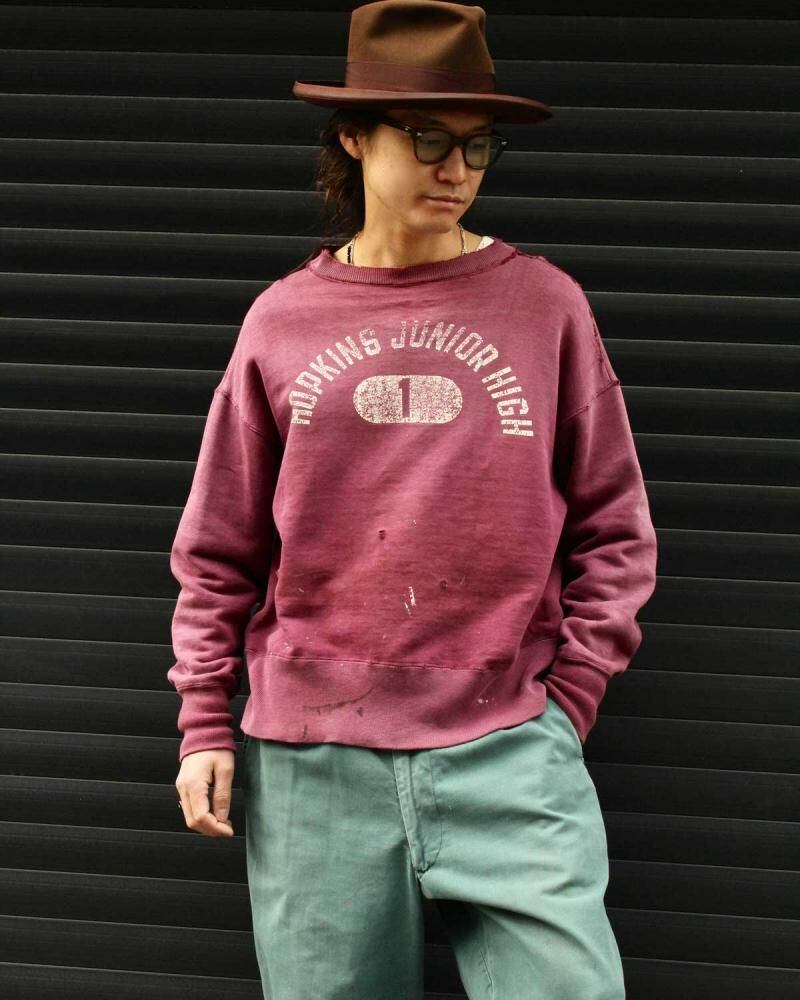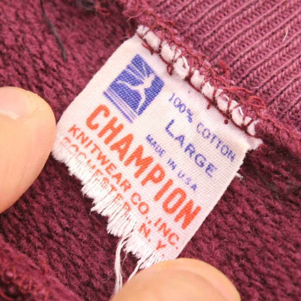 This Champion cotton sweatshirt features a mid-1960s runners tag. Its sun-faded, russet color and realistic aging give it a vintage look. Made from 100% cotton, it boasts a crisp, natural texture, a signature look from the 1960s. The set-in sleeves create a unique, relaxed silhouette, while the long ribbing creates a balanced look. As this is an old item, there may be some slight fading over time. Please review the photos and understand the characteristics of vintage items before purchasing.