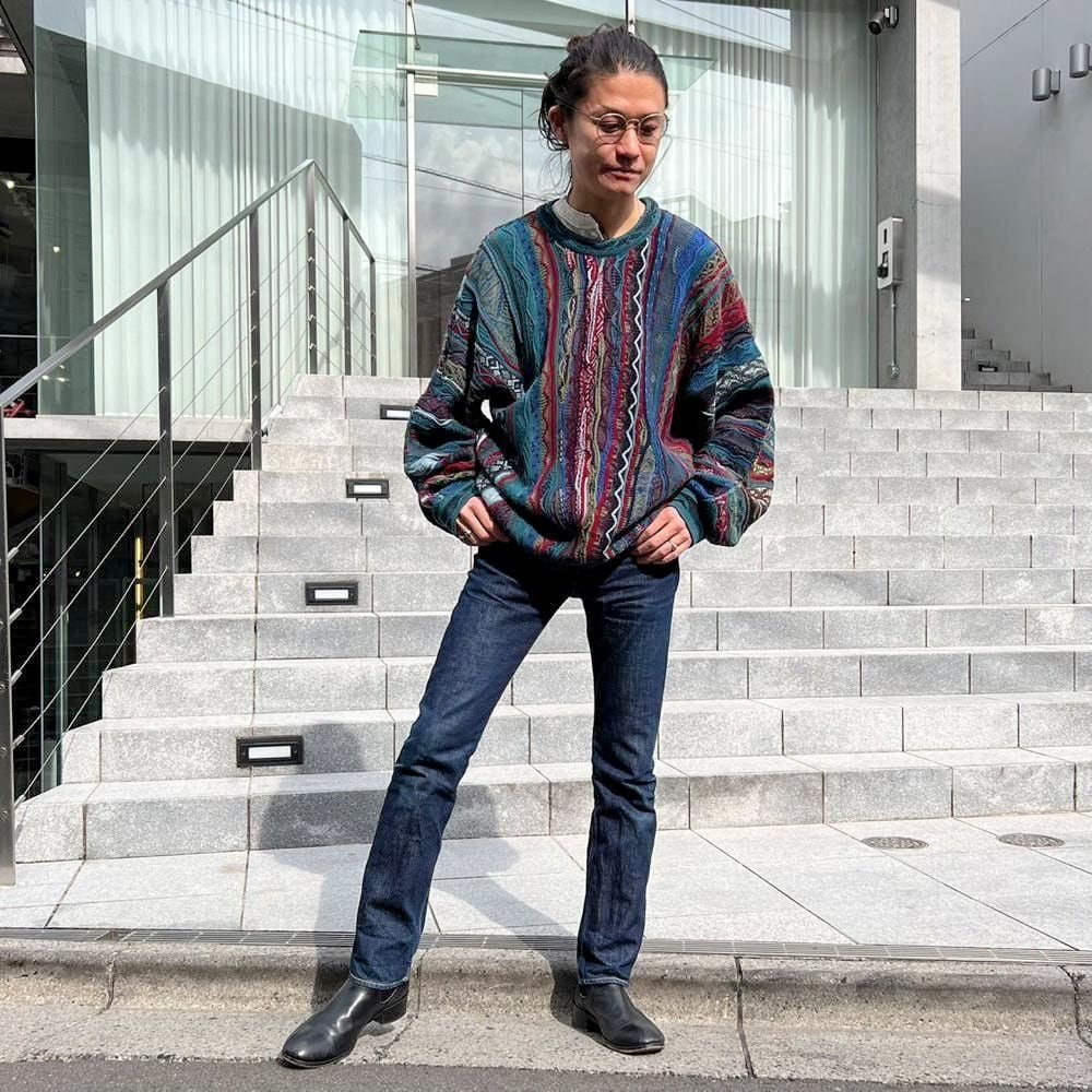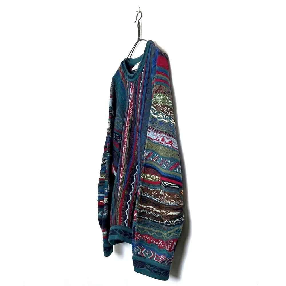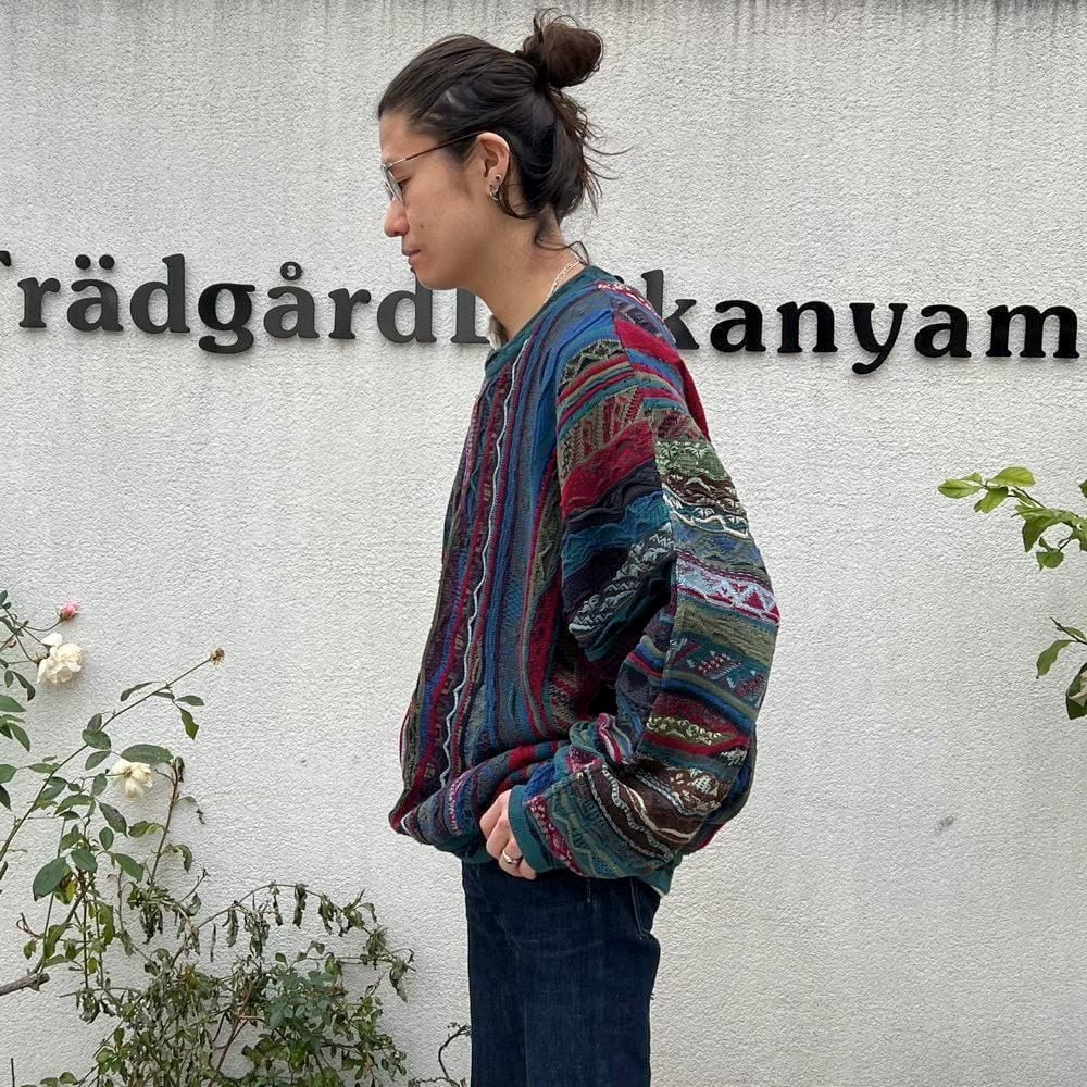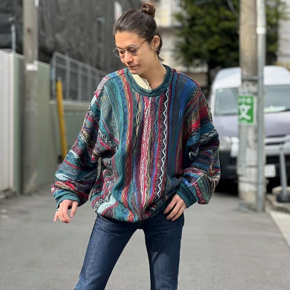This 90s Koozy cotton sweater features a crazy dark, smoky color and the distinctive 3-D knit of Kooozy, creating a truly stylish look. Its a soft, smooth, and comfortable 100% cotton knit sweater. The size is XL, and it has a relaxed, relaxed silhouette.