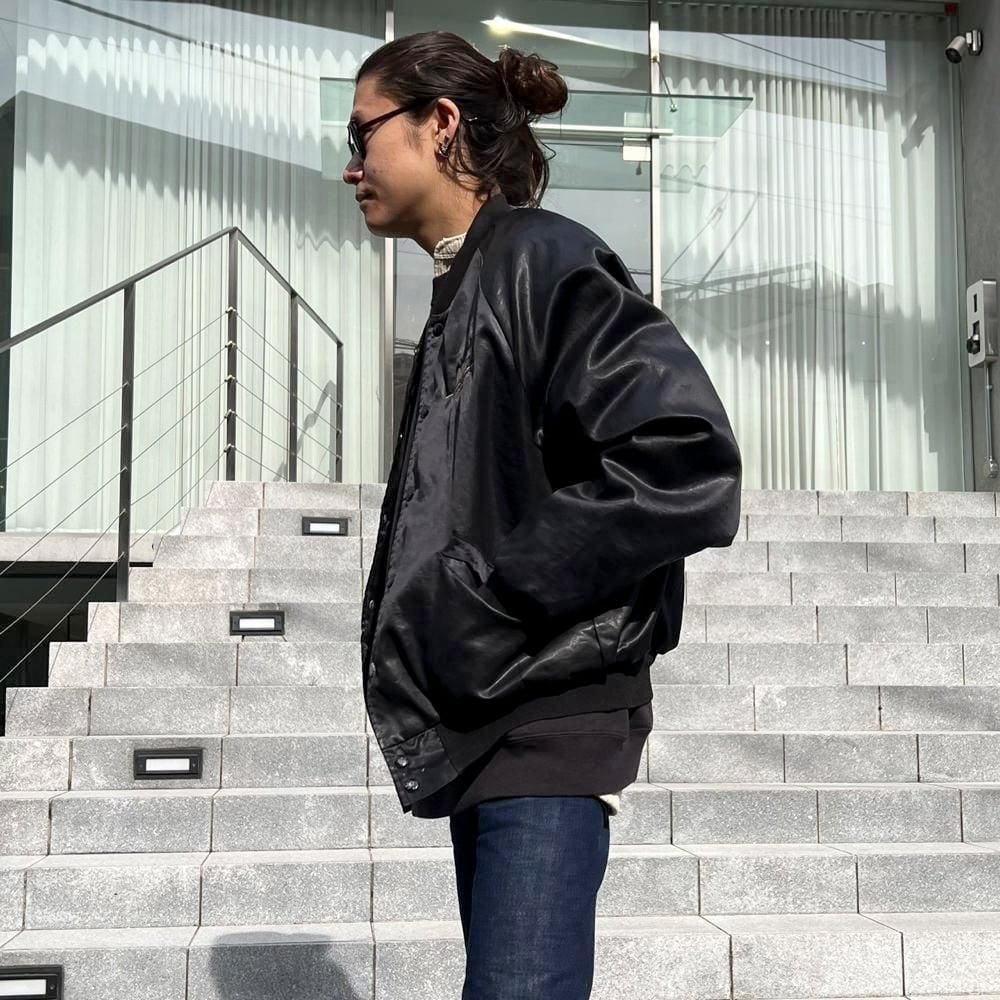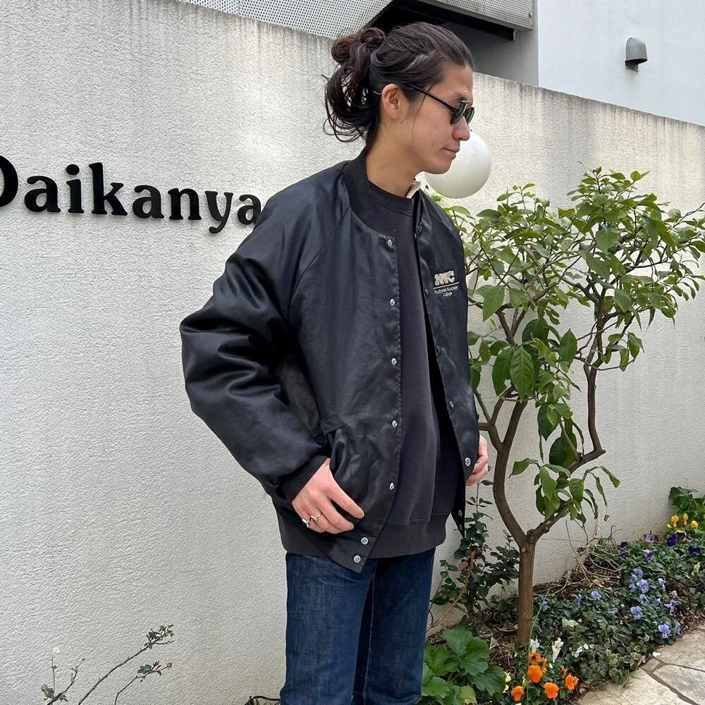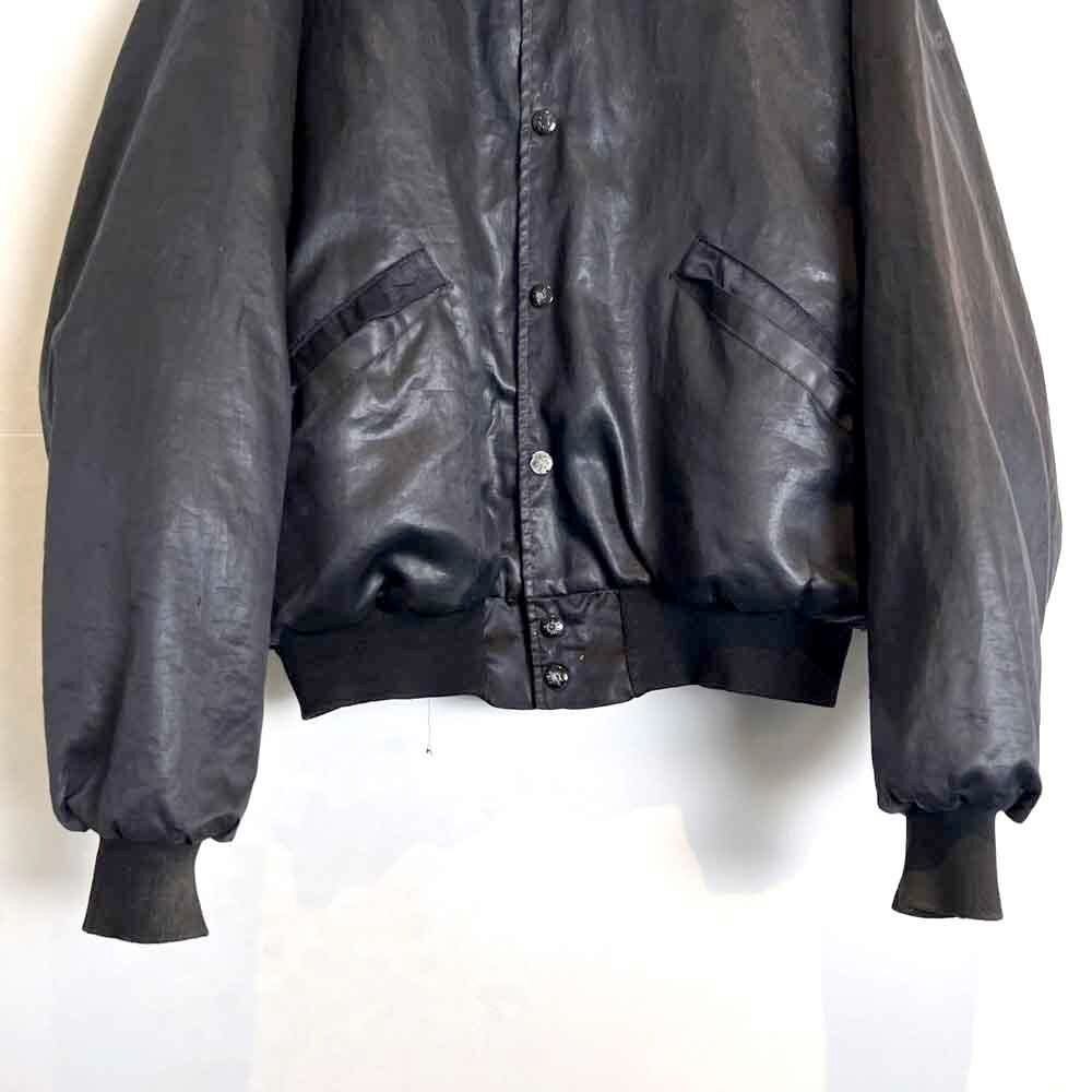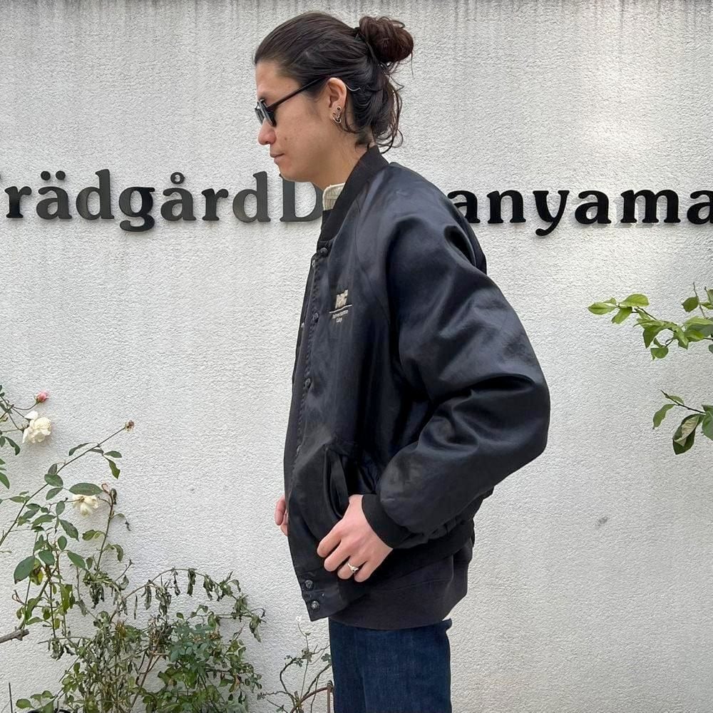 This 1980s Northwest Nazarene University college jacket features a worn nylon fabric with a logo embroidered on the chest, a versatile black color, and a vintage feel. The raglan sleeves, naturally falling shoulders, and overall size balance are excellent.