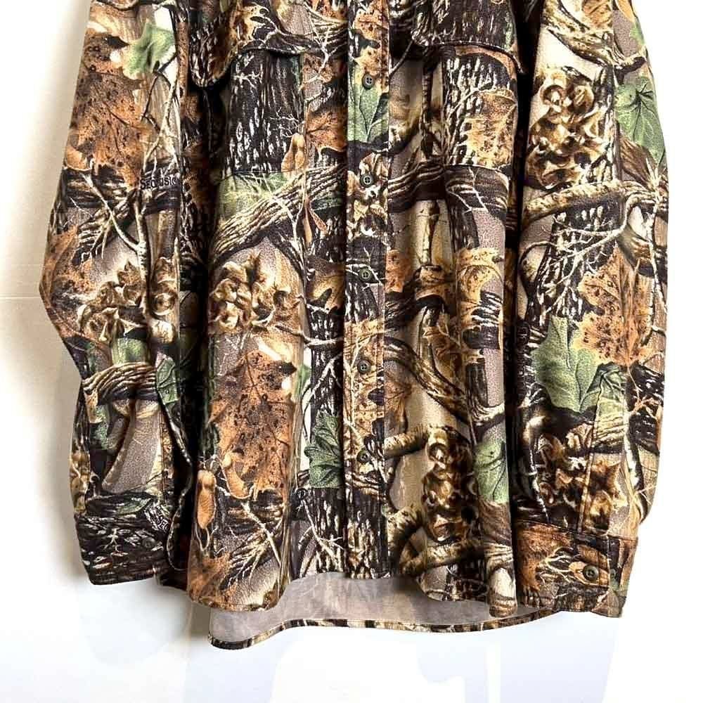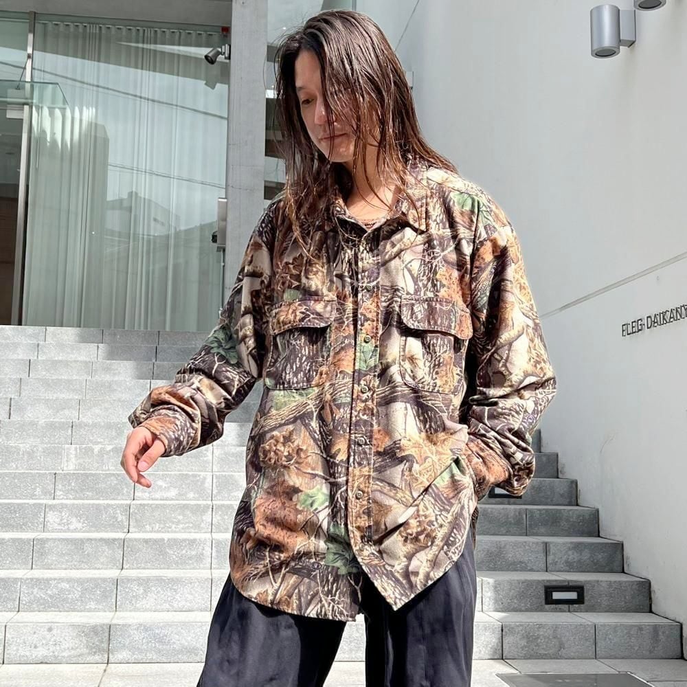 This Realtree camouflage flannel shirt from the 90s is a great choice for outerwear, but incorporating camouflage as an inner layer gives a fresh look to your outfit. Made of soft, fluffy, and lightweight flannel, this oversized shirt is perfect for a relaxed fit.