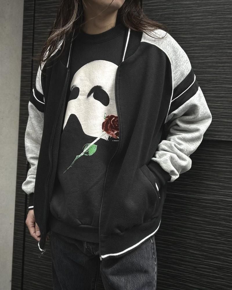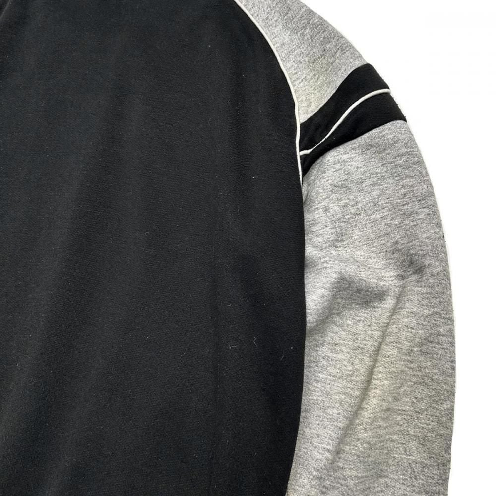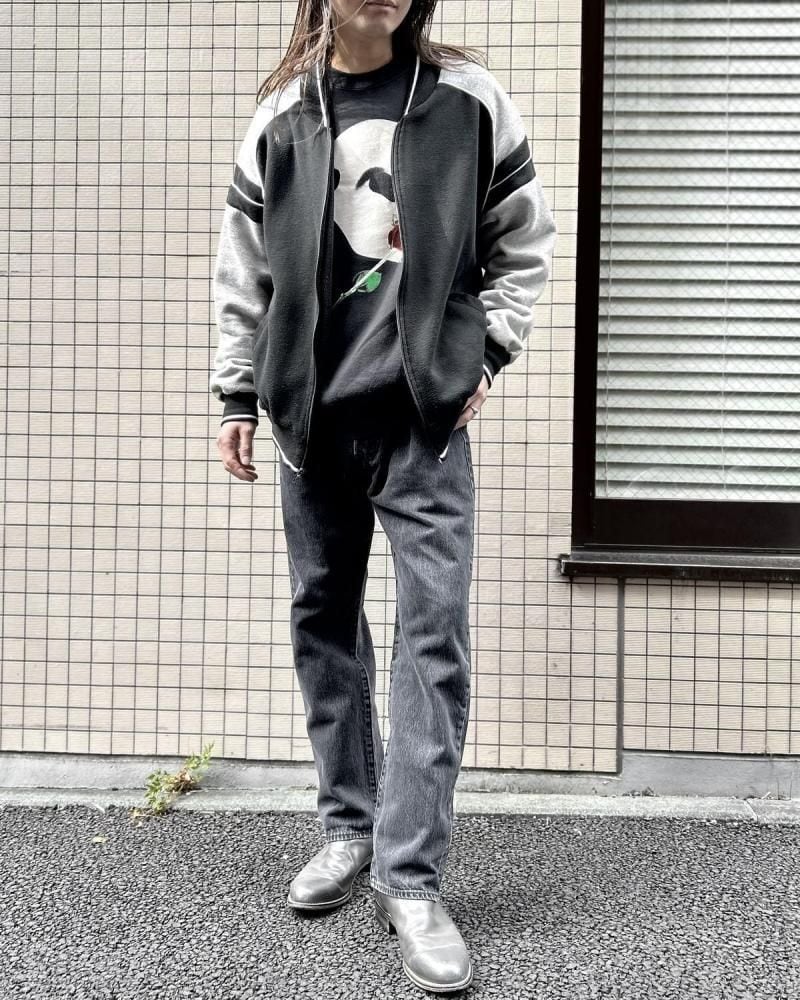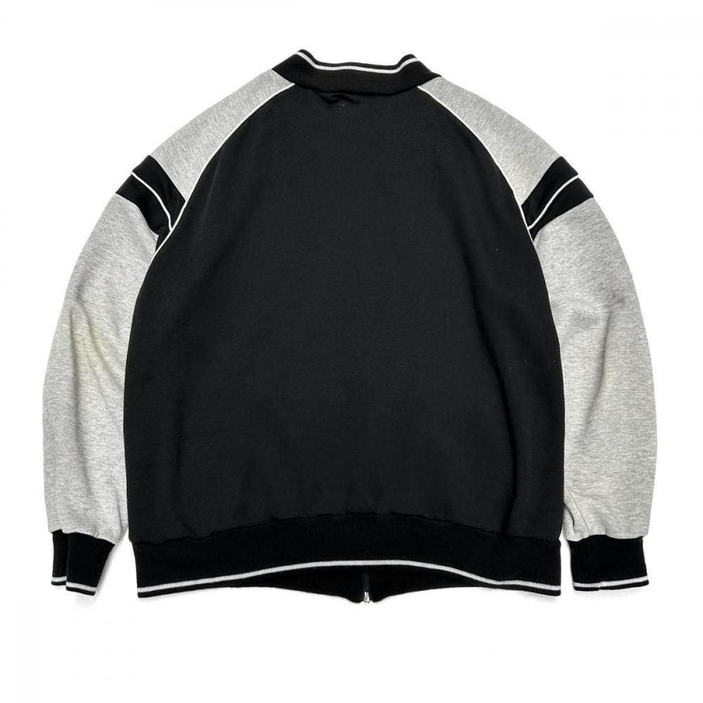 This cardigan is made from sweatshirt fabric and dates back to the 1990s. Its design, reminiscent of an award-winning jacket or sports jersey, allows for a light, cardigan-like feel. Made from a soft blend of polycotton and rayon, its monochrome color scheme makes it a versatile piece. Its relaxed silhouette offers a comfortable feel. As this is an old item, there may be some slight fading over time. Please review the photos and understand the unique characteristics of vintage items before purchasing.