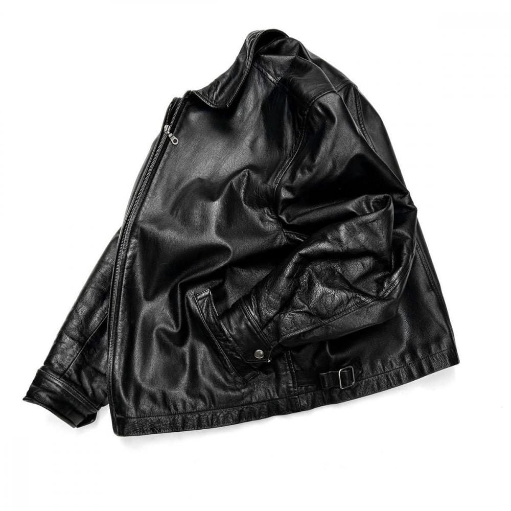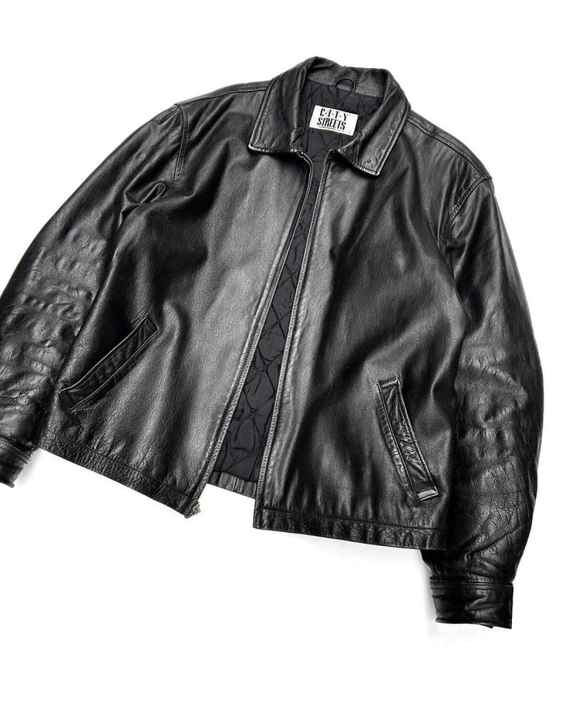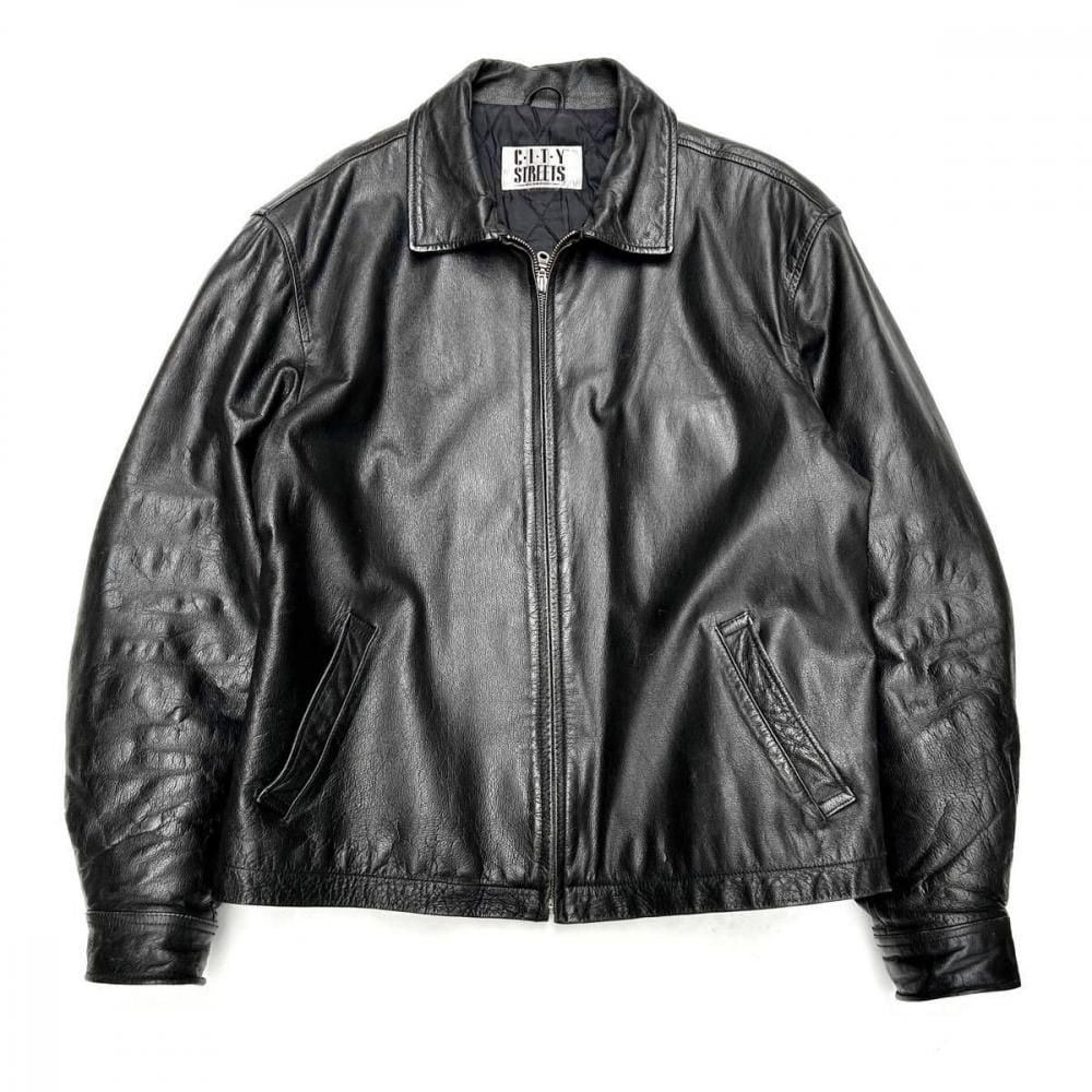 This leather jacket dates back to the 1980s. Its a JC Penney private label, made by CITY STREETS, a retailer known for its vintage clothing with a touch of culture. The simple, single-breasted rider style offers a clean look while providing just the right amount of room for a well-balanced silhouette. Made from slightly thicker lacy leather, it gives off a more masculine look, yet is not too heavy and comfortable to wear. As this is an old item, there may be some fading over time. Please check the photos and understand the characteristics of vintage items before purchasing.