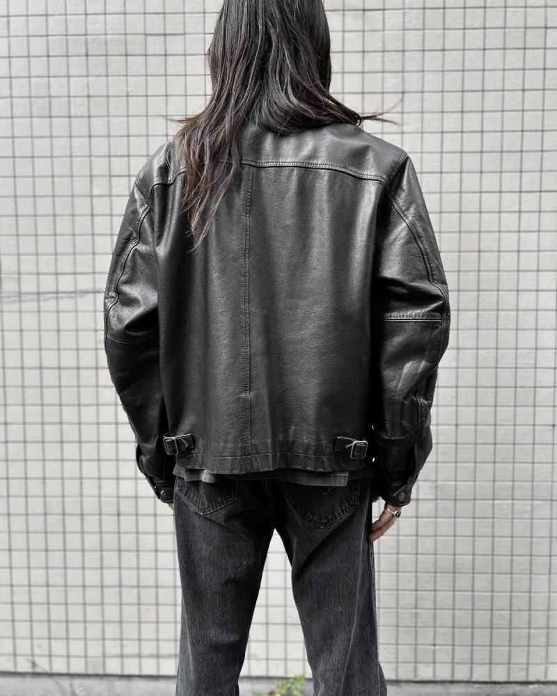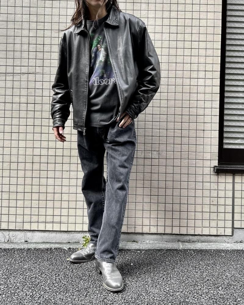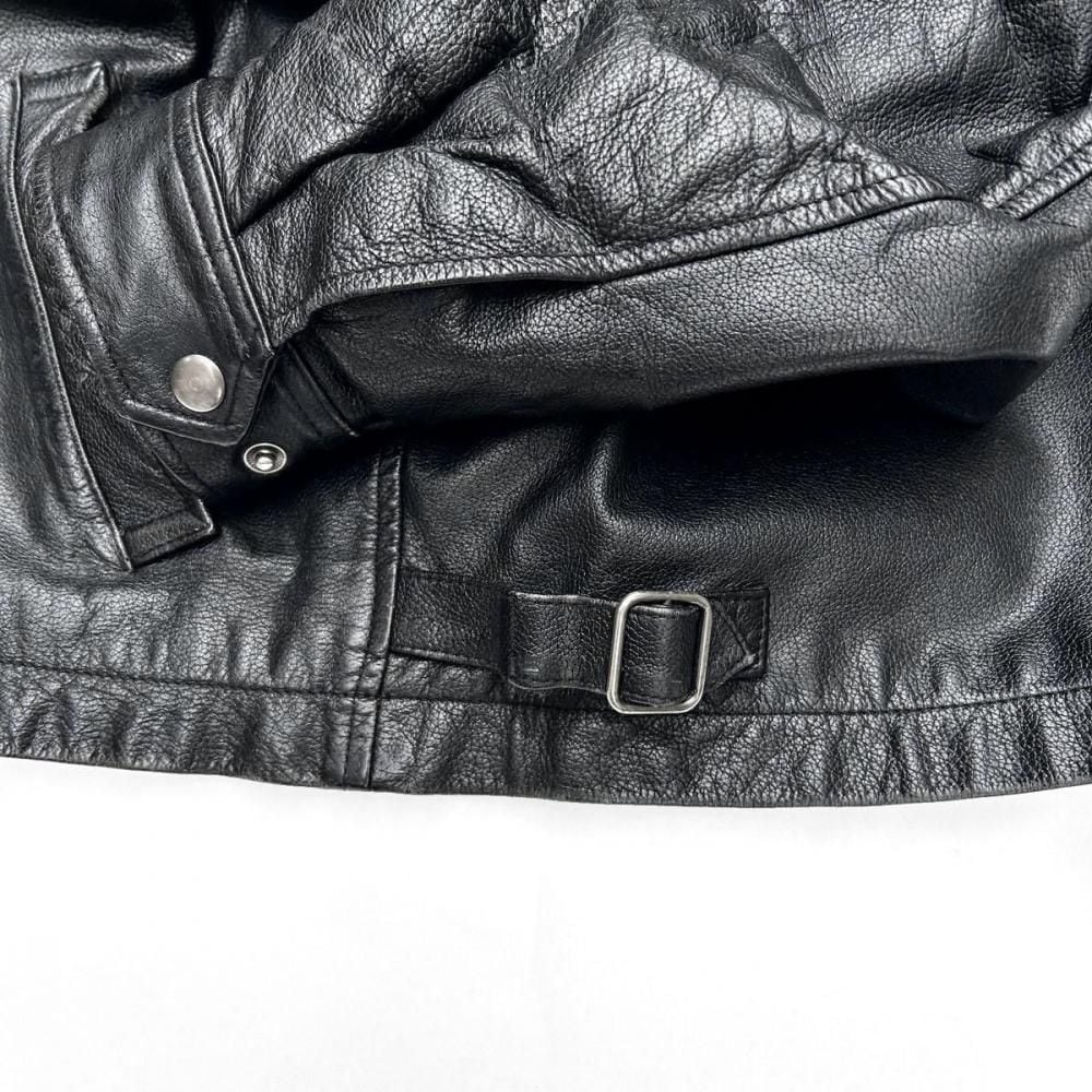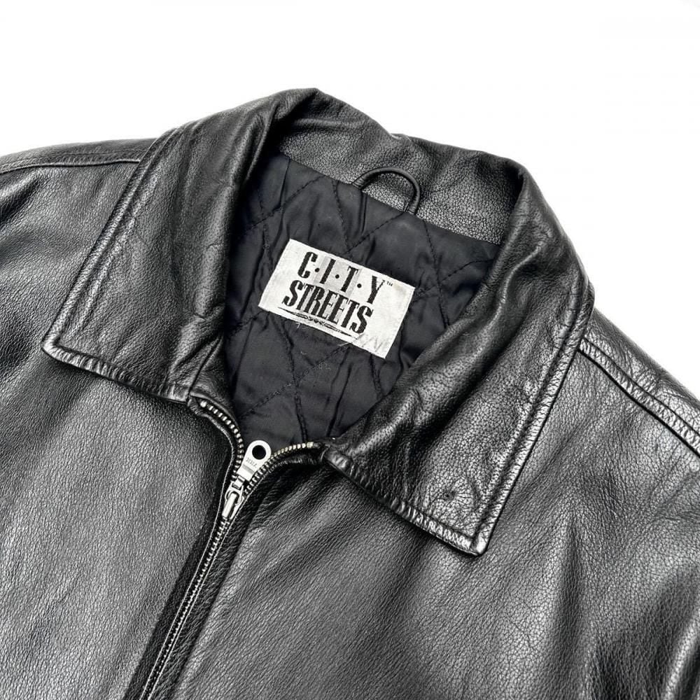 This leather jacket dates back to the 1980s. Its a JC Penney private label, made by CITY STREETS, a retailer known for its vintage clothing with a touch of culture. The simple, single-breasted rider style offers a clean look while providing just the right amount of room for a well-balanced silhouette. Made from slightly thicker lacy leather, it gives off a more masculine look, yet is not too heavy and comfortable to wear. As this is an old item, there may be some fading over time. Please check the photos and understand the characteristics of vintage items before purchasing.