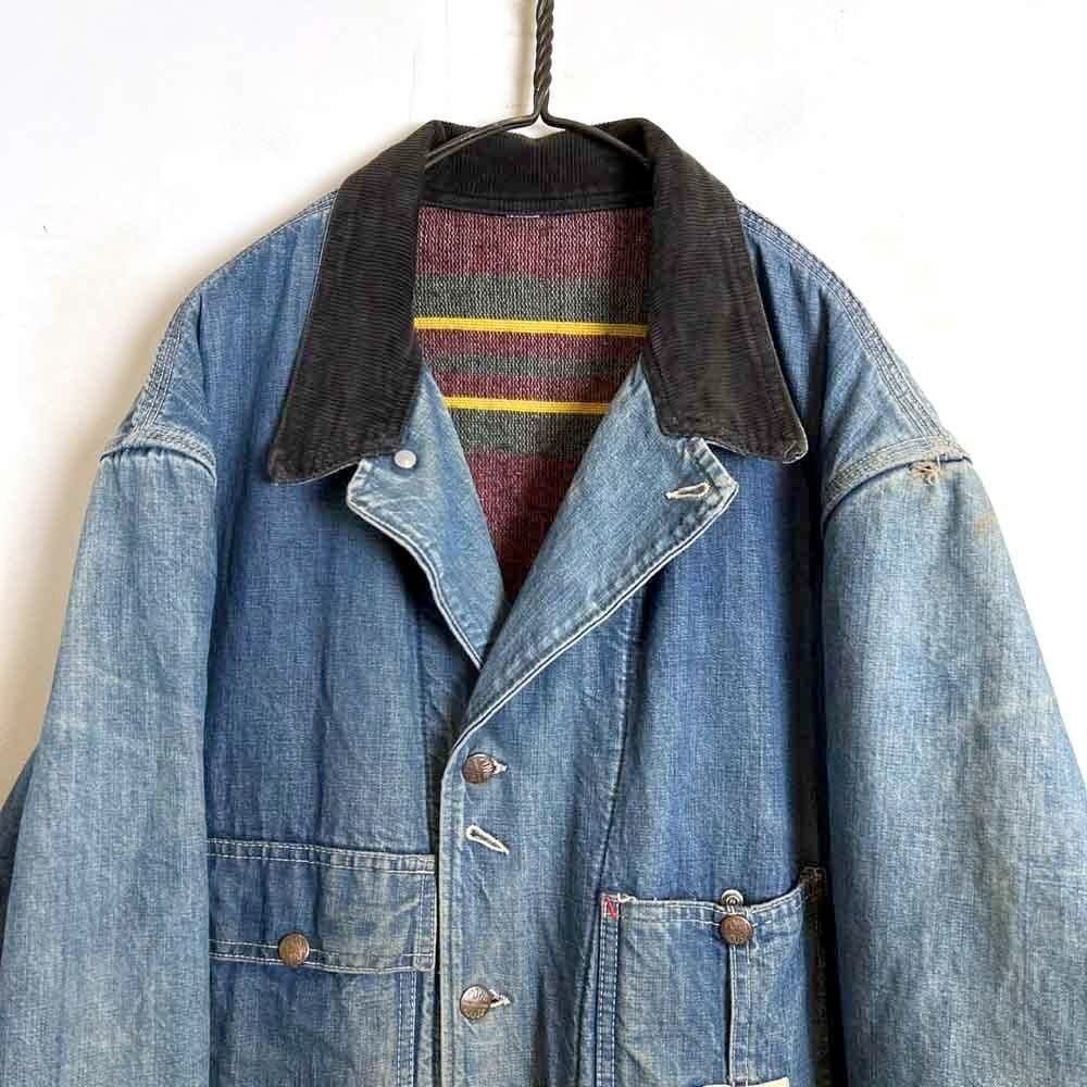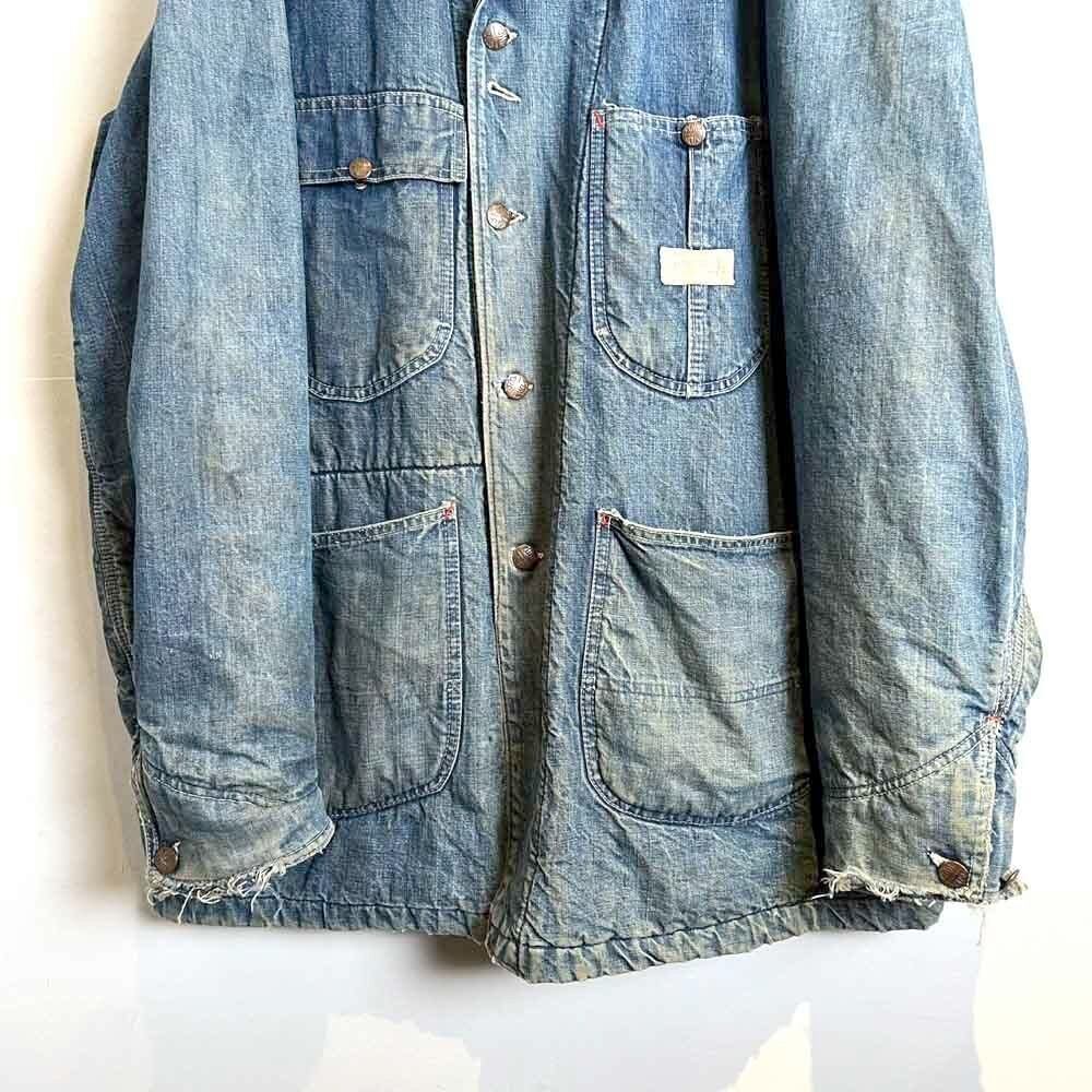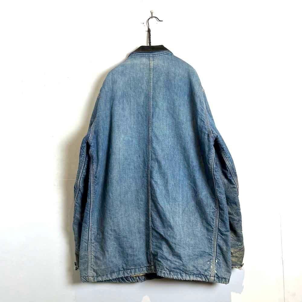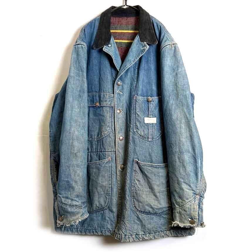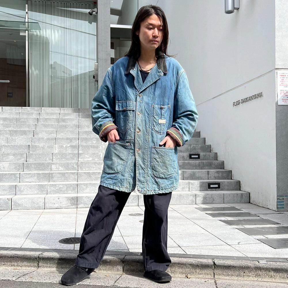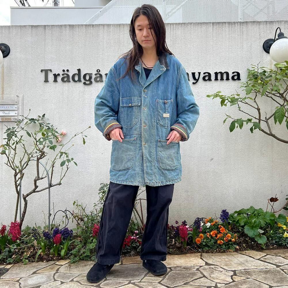 This is a super fresh piece with a long silhouette and a half-coat-like length, likely in sizes 3XL to 4XL. The soft, aged denim texture and beautifully faded indigo color create a truly stylish look.