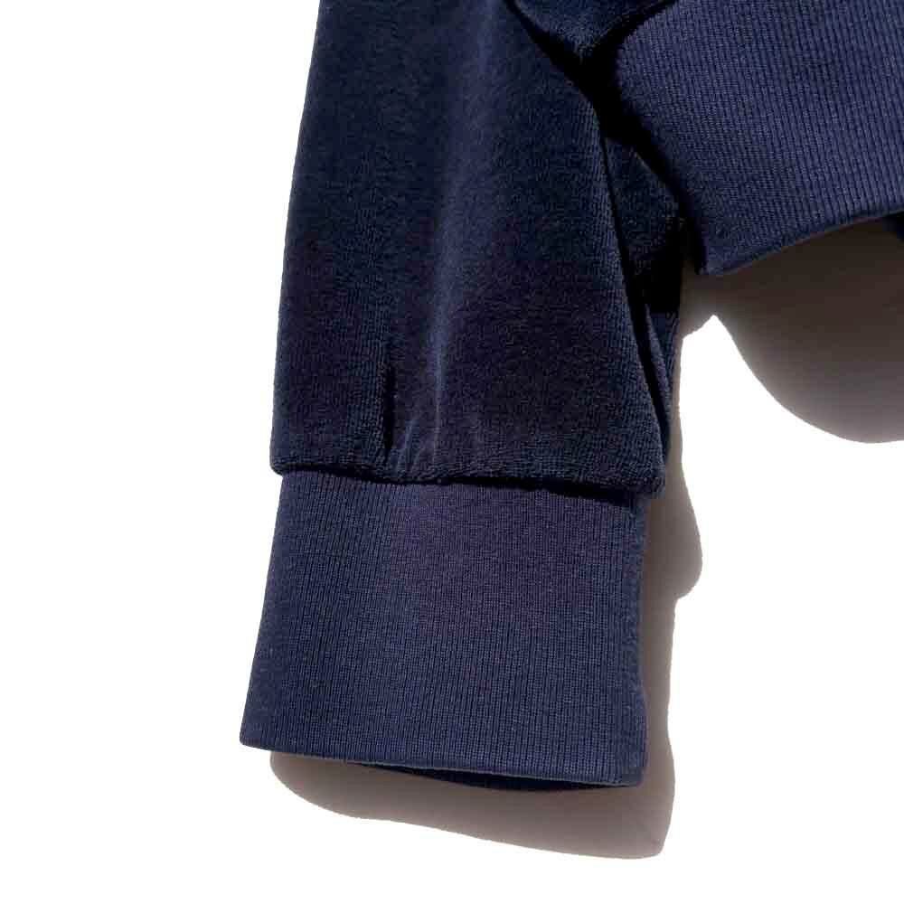 The lightweight velour fabric has a supple and elegant drape and a dull luster, making it a stress-free everyday item to wear.