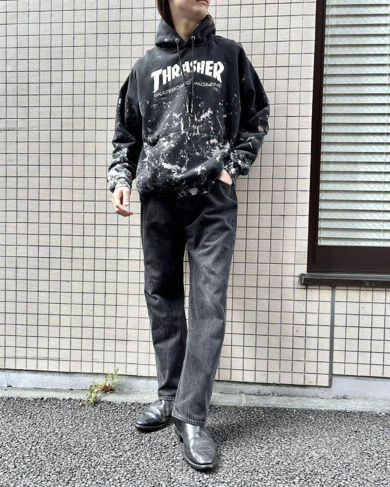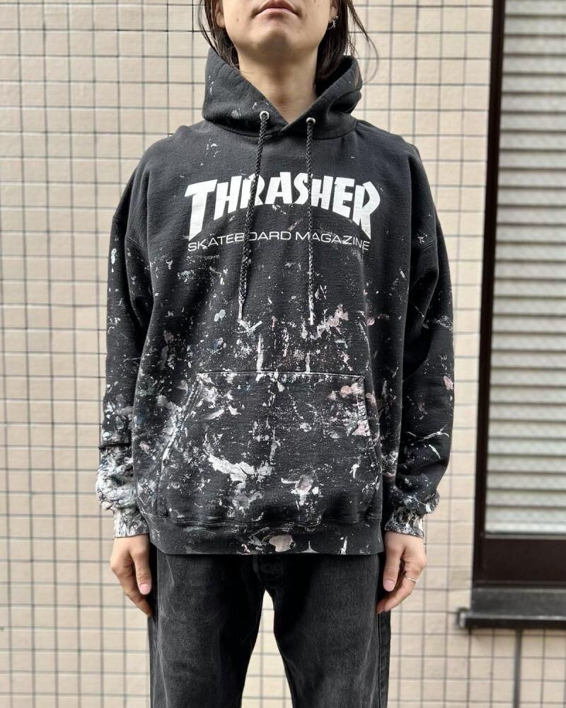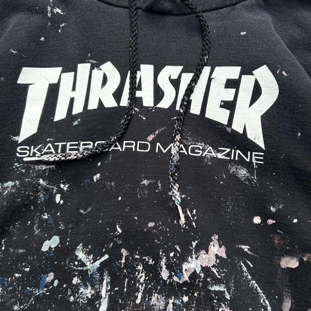 This classic Thrasher MAG LOGO sweatshirt features a striking, used feel and a touch of paintwork. Its a well-balanced silhouette, likely in sizes L-XL. As this is an old item, there may be some minor wear over time. Please review the photos and understand the characteristics of vintage items before purchasing.