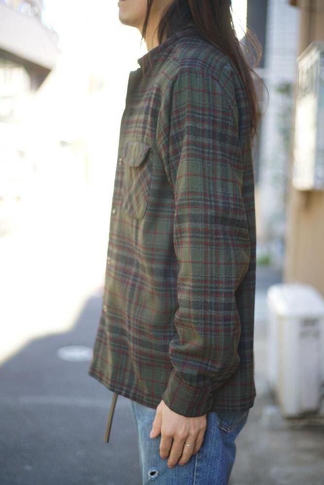 The alluring Dark Olive vintage-inspired check pattern creates a great atmosphere, allowing you to wear it loosely and casually while still enjoying the substantial feel unique to vintage pieces.