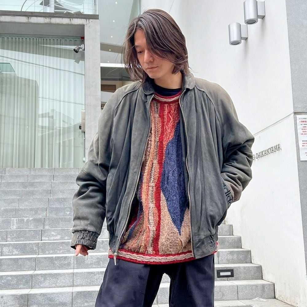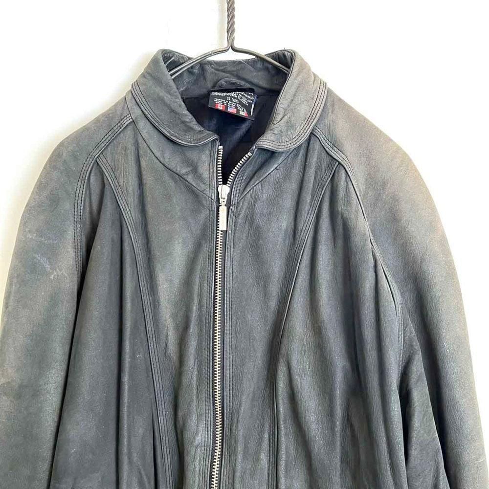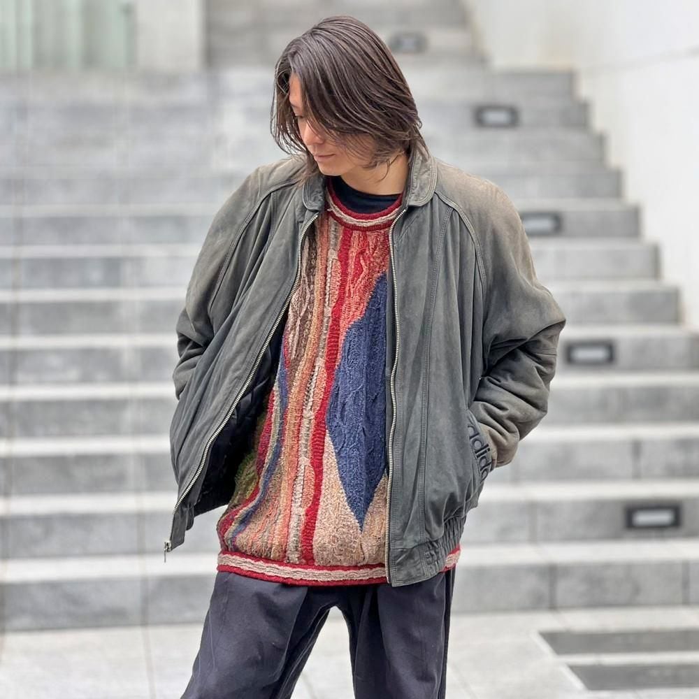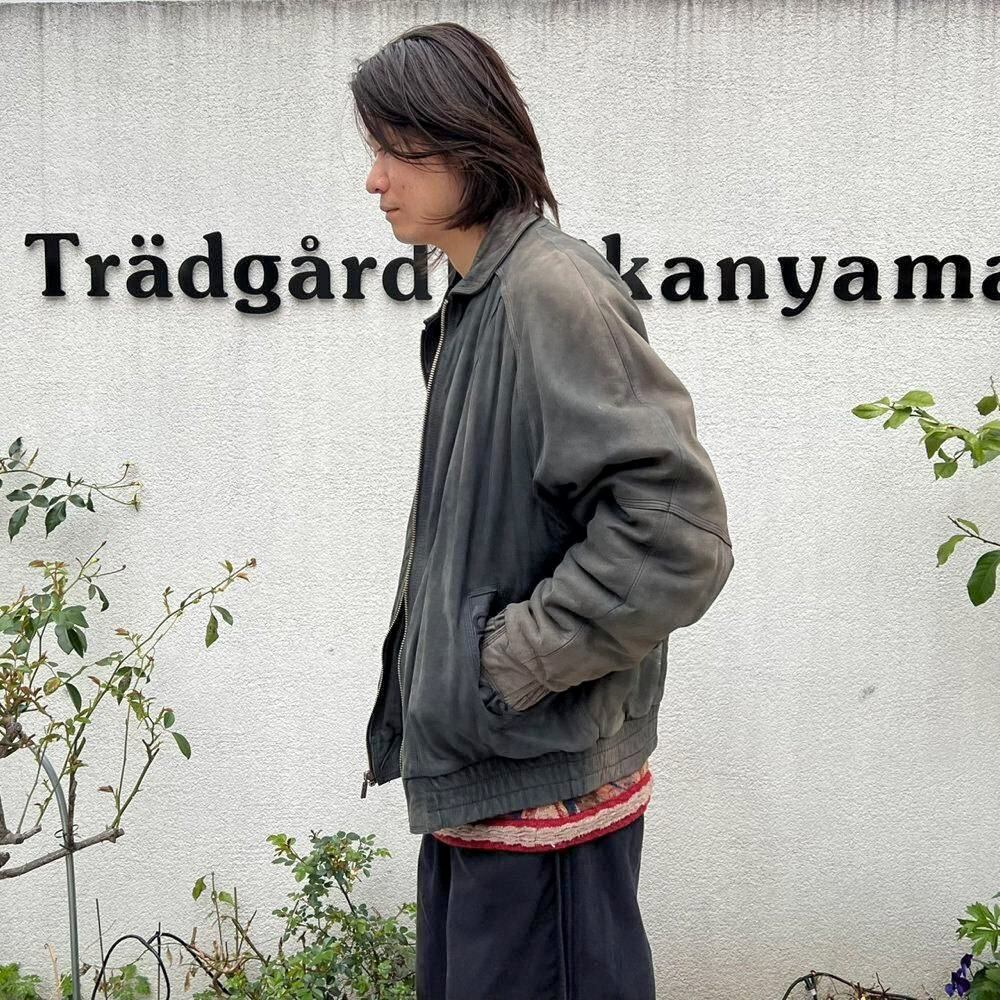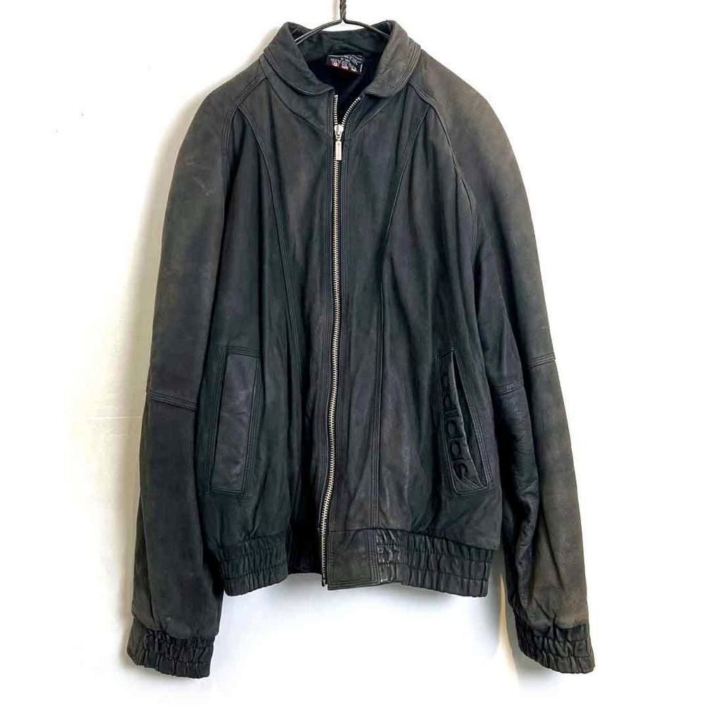 This 90s Adidas nubuck leather jacket has a beautifully faded charcoal color that has developed a unique patina over time. The matte texture of the nubuck leather, combined with the Adidas logo, gives it a sophisticated, understated look that belies its sporty brand image. The jacket has a comfortably relaxed fit and a great silhouette.