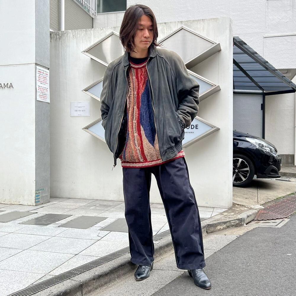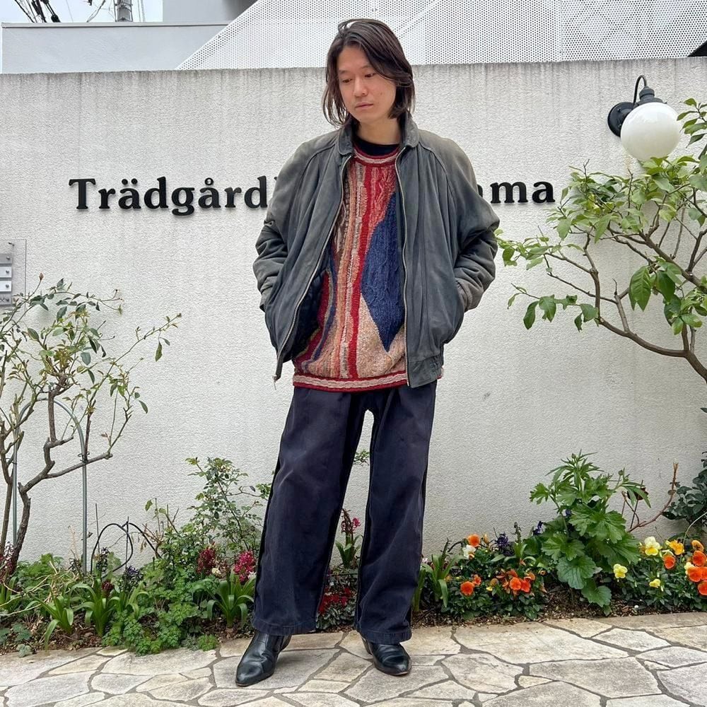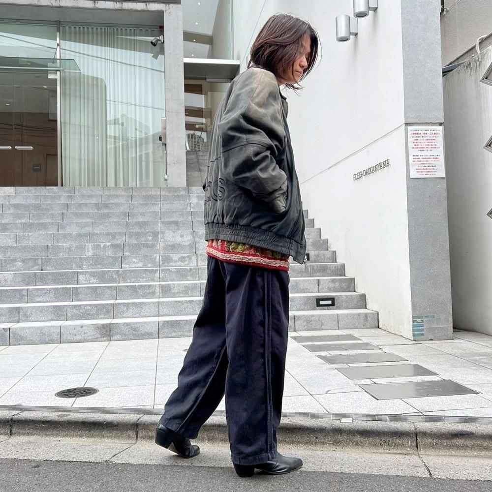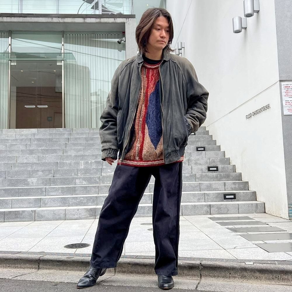 This 90s Adidas nubuck leather jacket has a beautifully faded charcoal color that has developed a unique patina over time. The matte texture of the nubuck leather, combined with the Adidas logo, gives it a sophisticated, understated look that belies its sporty brand image. The jacket has a comfortably relaxed fit and a great silhouette.