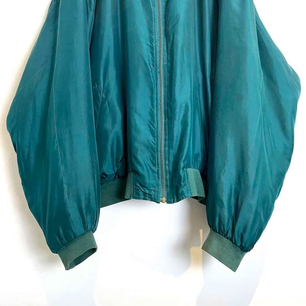 This 100% silk garment offers a light, comfortable feel that makes it almost weightless, and its relaxed silhouette and deep, bluish-green hue create a lovely atmosphere. Its a versatile light outer layer that can be worn in a wide range of seasons.