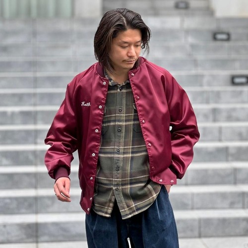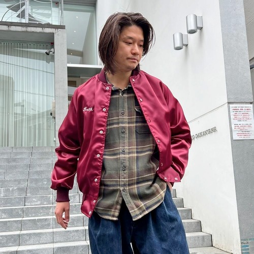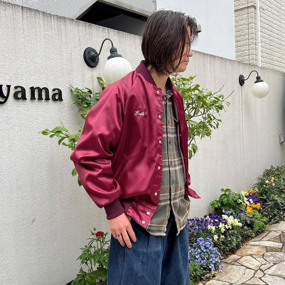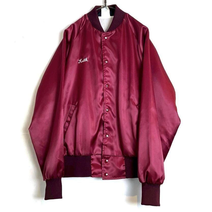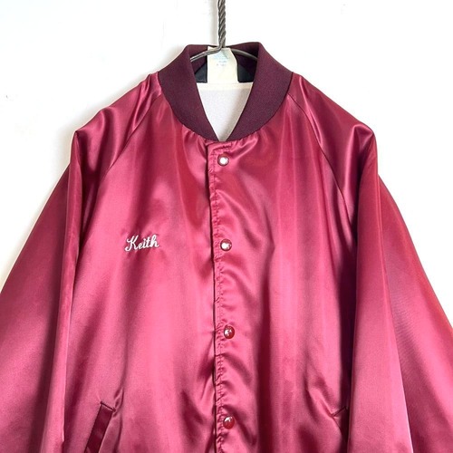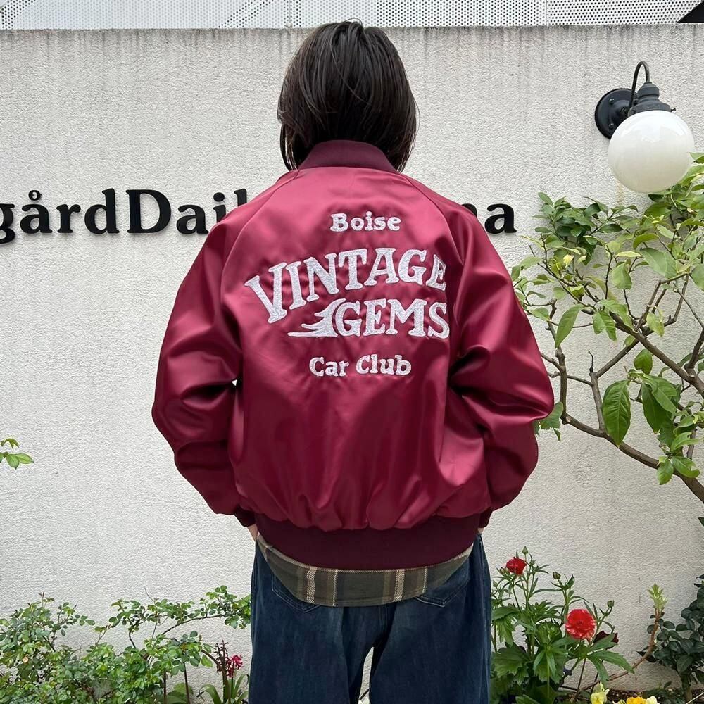 This 1980s nylon satin jacket features embroidery of a car club that still exists in Boise, Idaho, on the back. The sensual burgundy satin fabric perfectly complements the embroidery, making it a truly unique piece. Its marked as a size L, a good size with just the right amount of room.