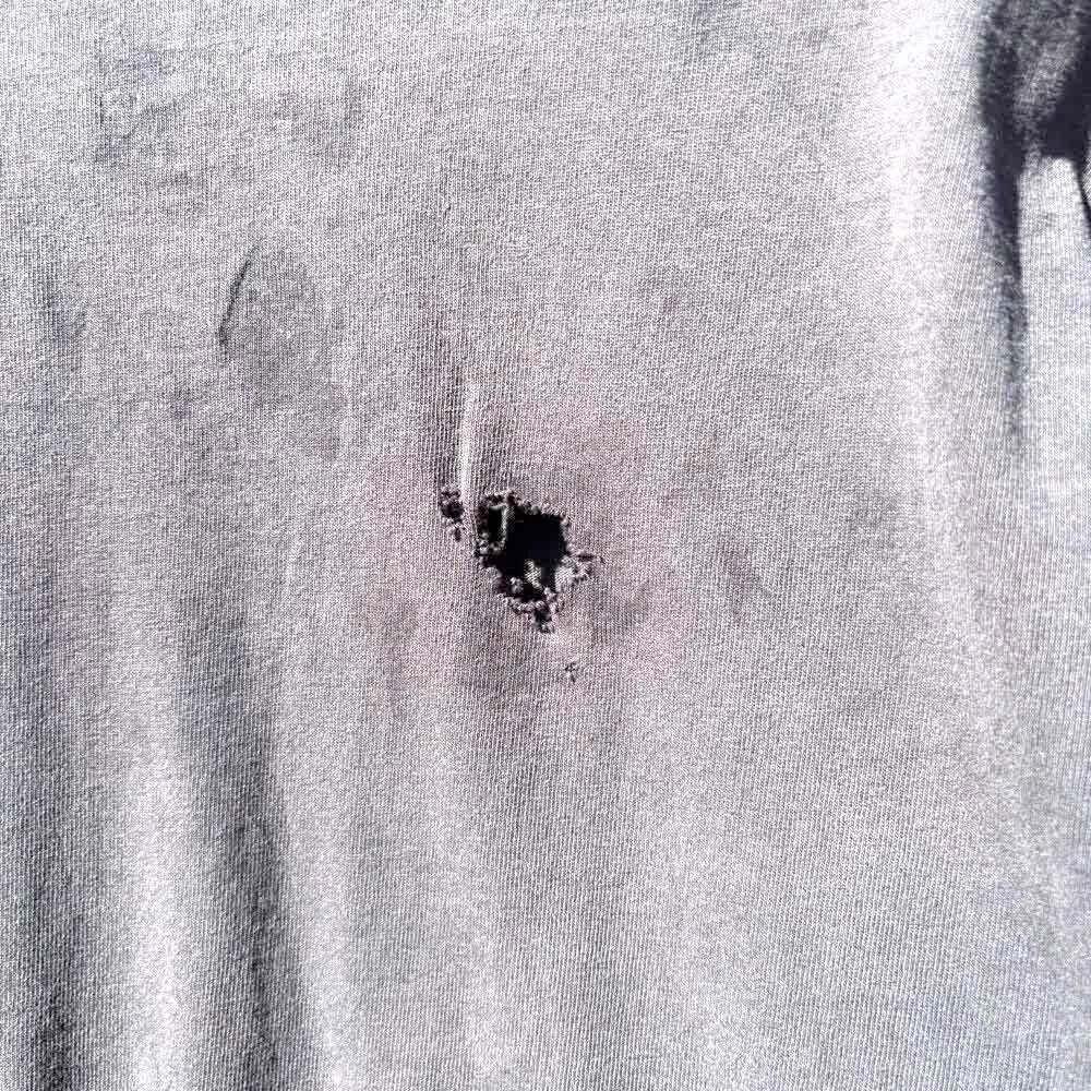 Made in the USA by Fruit of the Loom, with single stitching on the sleeves and hem.