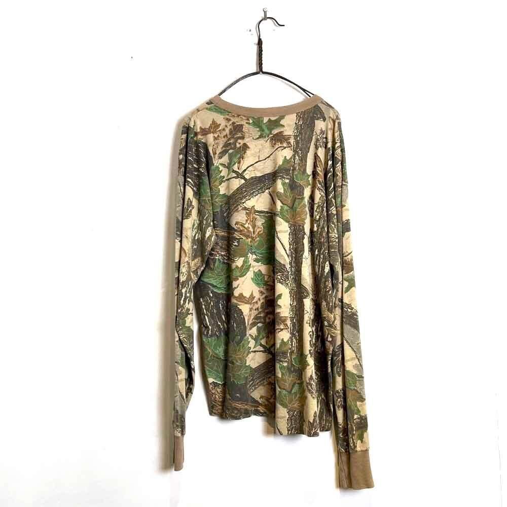 This 90s RealTree camouflage long-sleeve T-shirt has a great faded khaki camouflage pattern and a soft, aged fabric that feels comfortable to wear. It has a comfortably relaxed fit and the all-over print makes it a great layering piece.