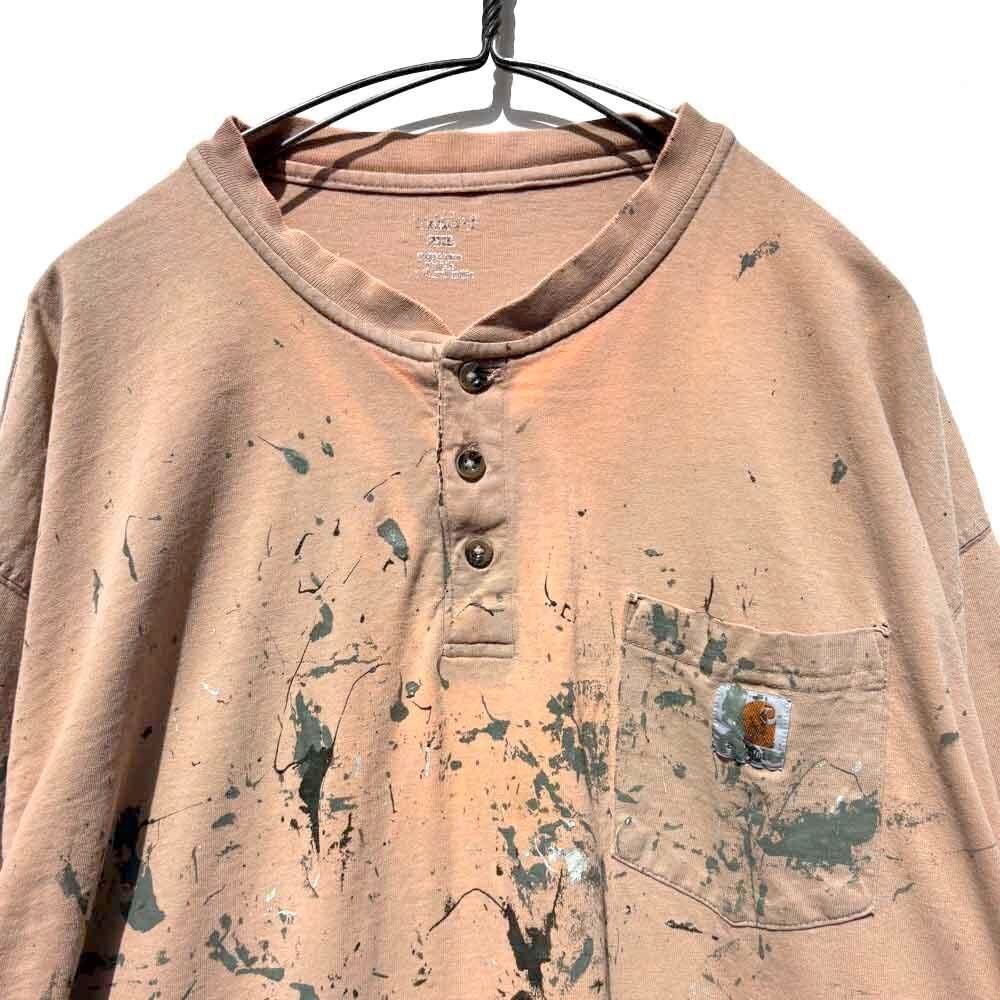 This is a Carhartt long-sleeved henley neck t-shirt from around the 2000s, showing signs of high aging.