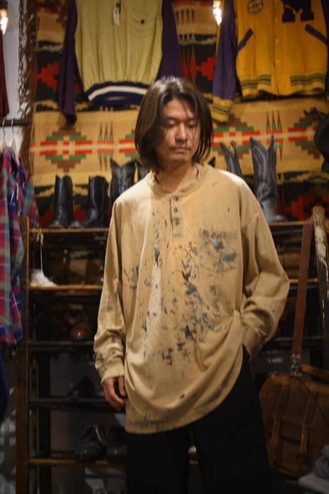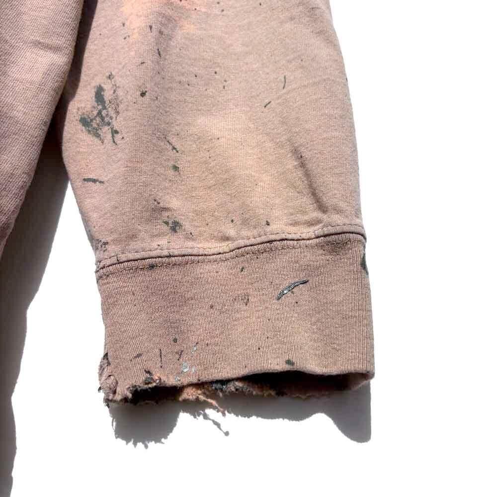 The contrast of black and green ink splattered throughout the garment creates an artistic look, while the exquisite damage to the sleeves and hem gives it a unique, one-of-a-kind vintage feel.