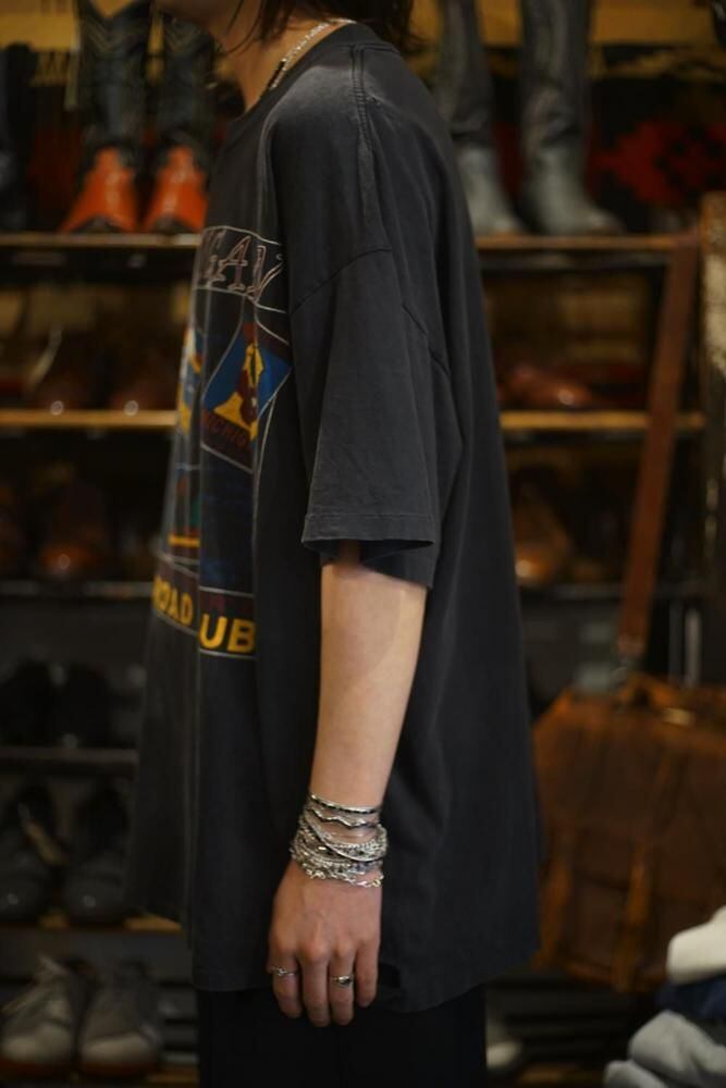 A black body that has faded with age, 100% cotton fabric that becomes softer with age, and a relaxed, loose silhouette in XL size.