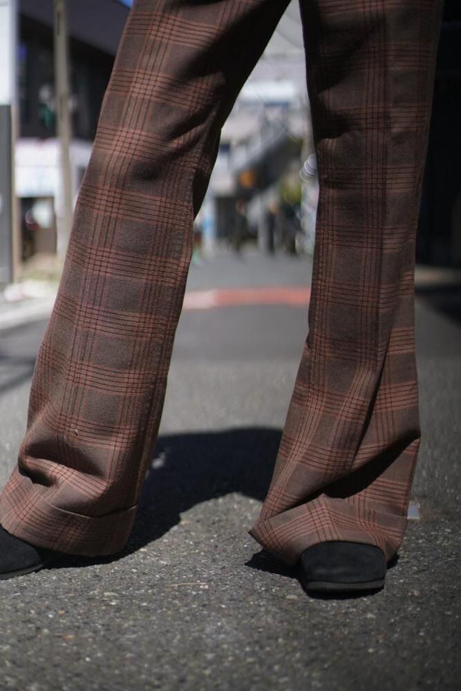 Levis Sta-Prest, a representative non-denim item, boasts an impressive big bell flare silhouette that widens from the knee to the hem, making a powerful impact.