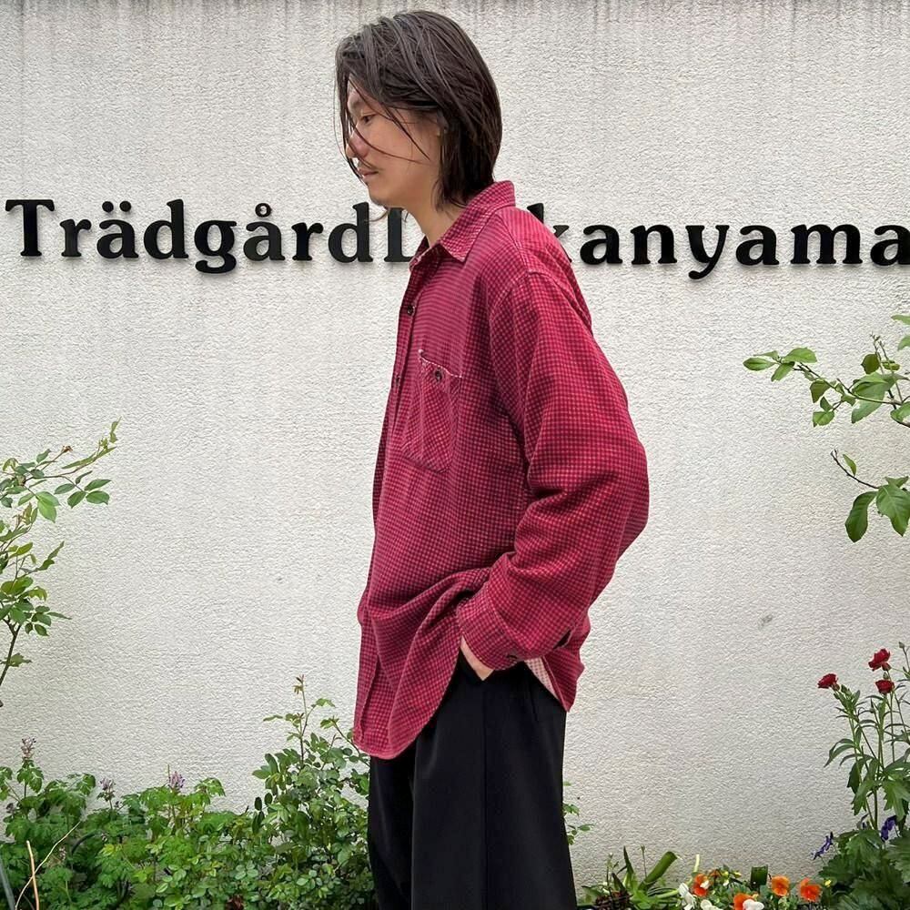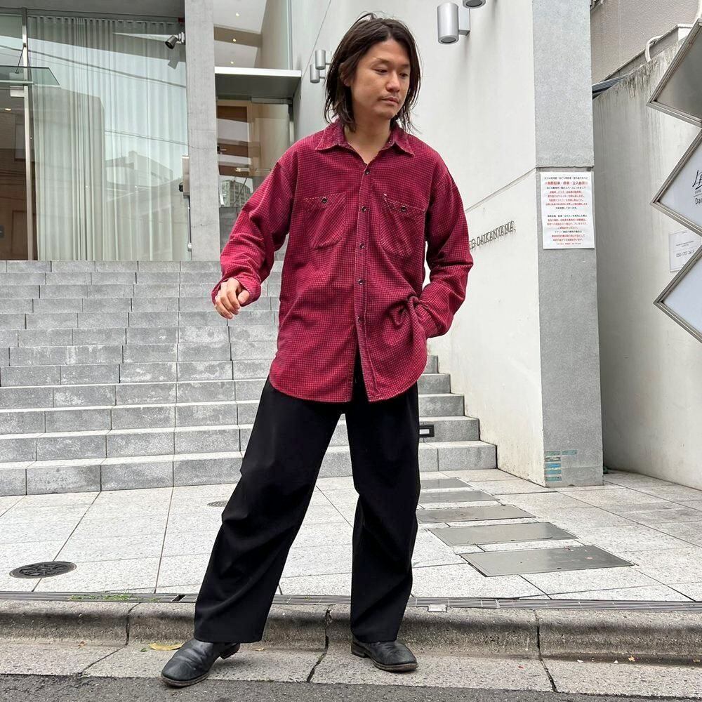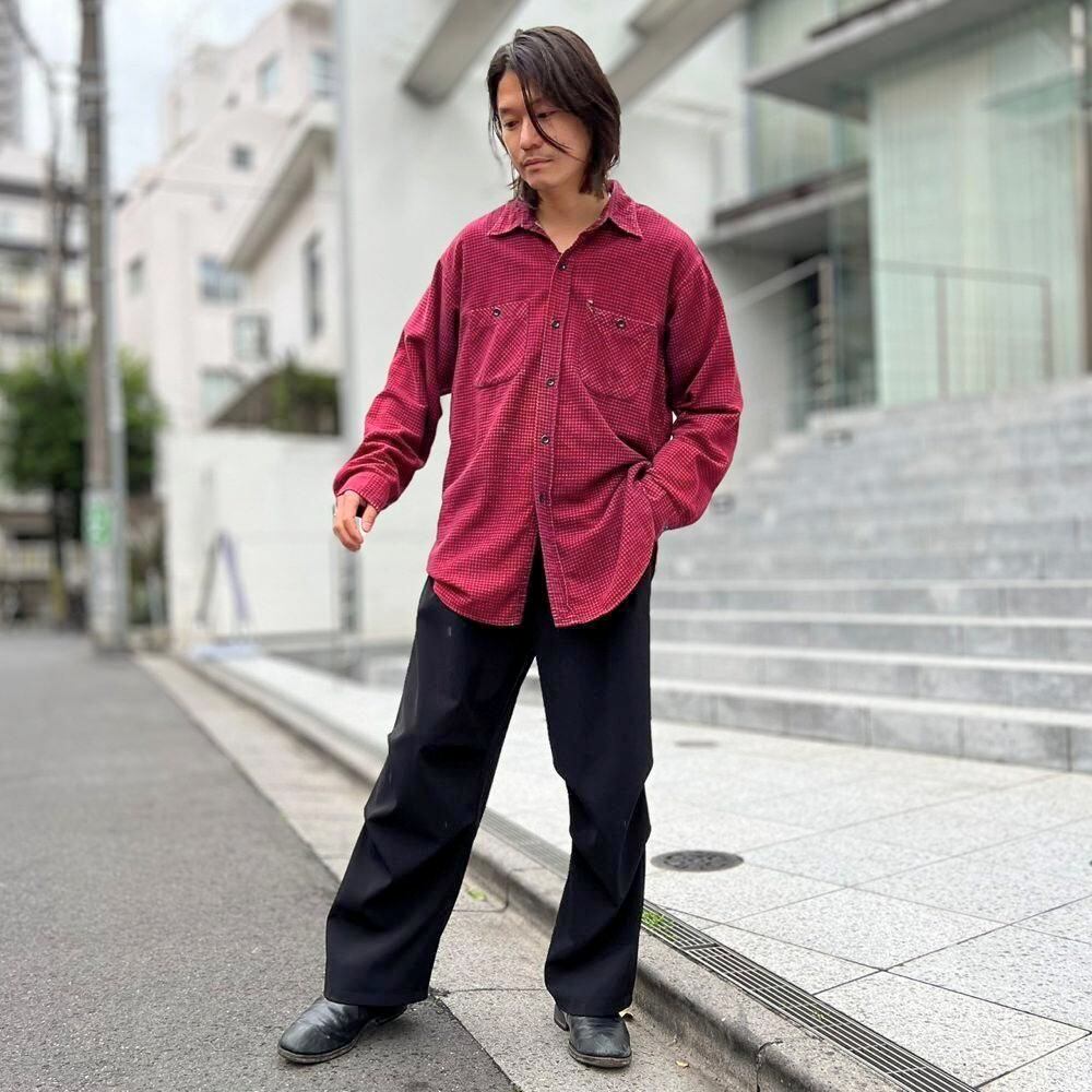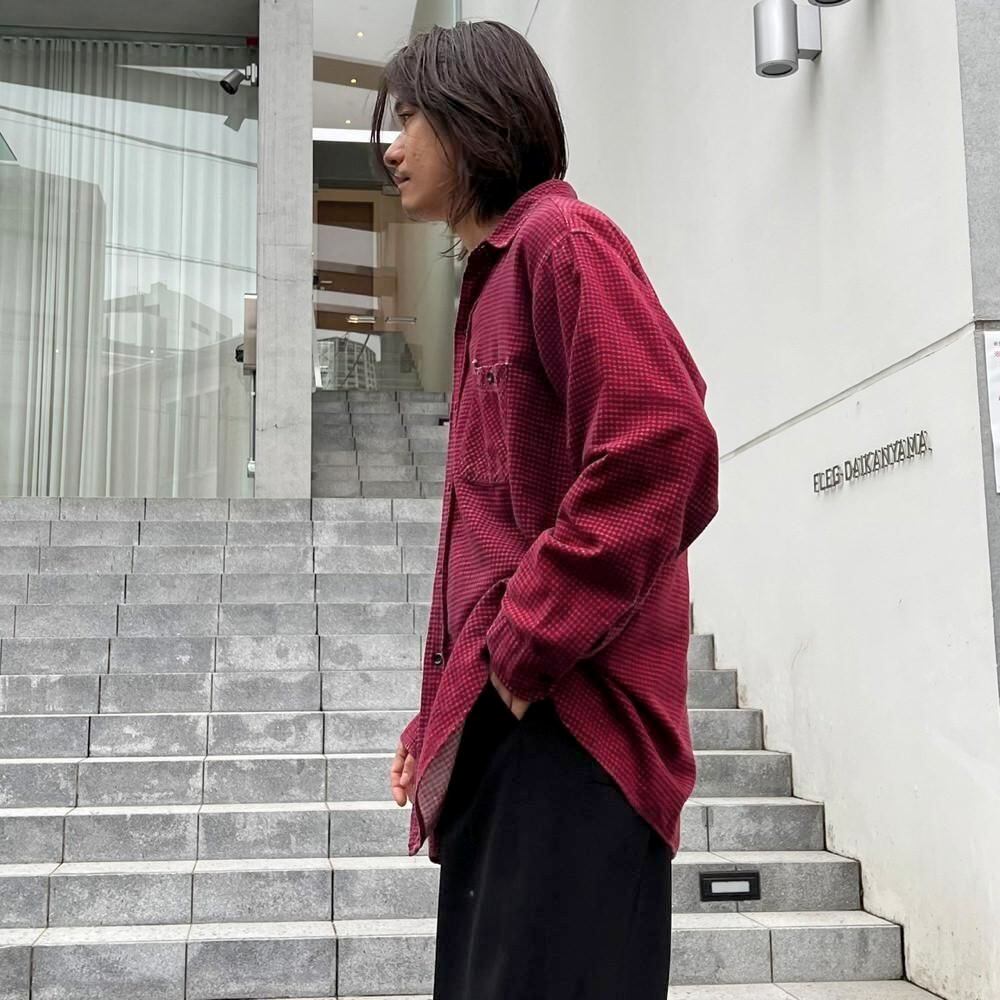 A 1950s Pilgrim cotton flannel shirt with gussets. The red and black houndstooth check pattern has a beautifully faded look due to age. The size is marked as 16 1/2 (L), a rare relaxed silhouette for a vintage shirt. Made from soft and comfortable 100% cotton flannel fabric.