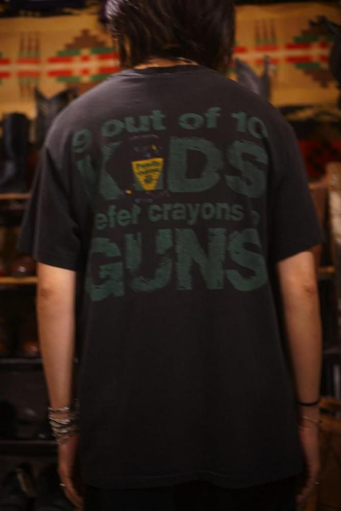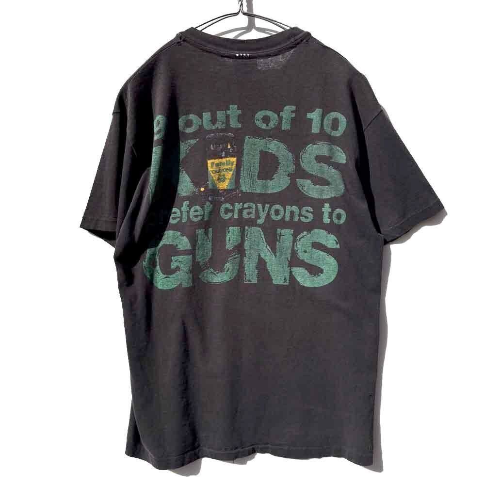 The back is engraved with the striking message, 9 out of 10 kids prefer crayons to guns.