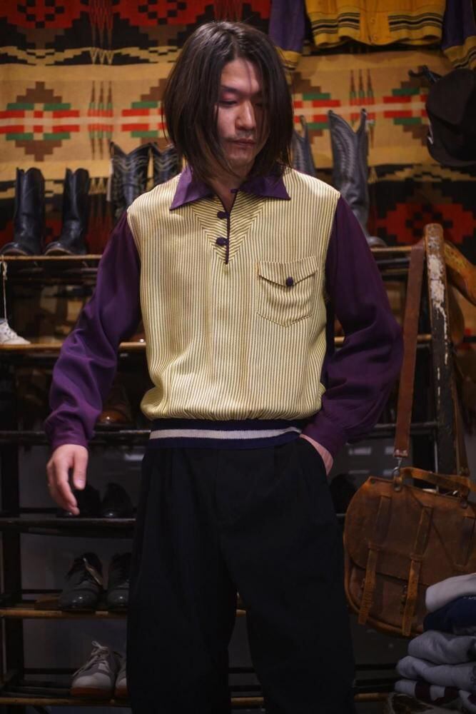 This is a pullover rayon shirt from Gaucho, a legendary brand that captivated celebrities and rockabilly fans on the American West Coast around the 1950s.