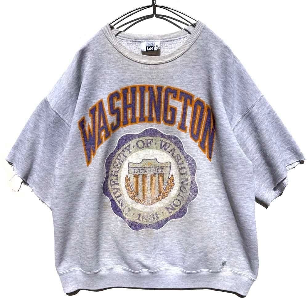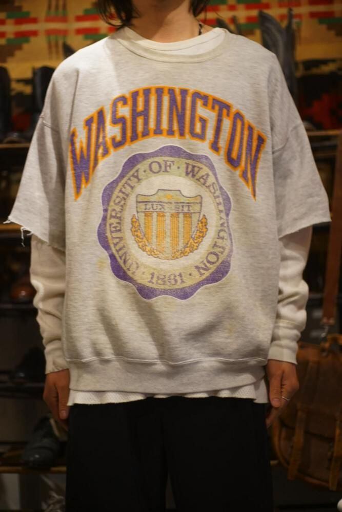 This is a cut-off college sweatshirt from the University of Washington, a prestigious public university in Seattle, dating back to the 1990s.