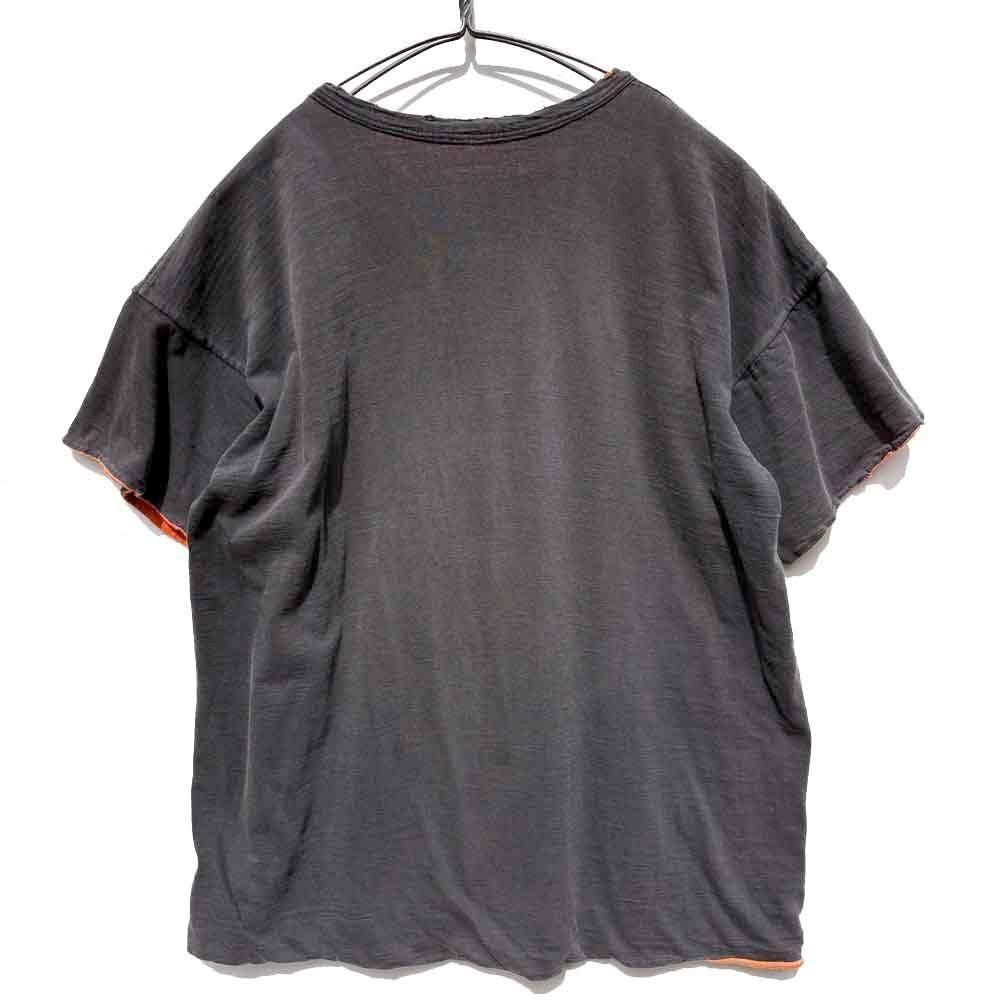 The intensely faded, charcoal-black body, the visible crashes and punk details throughout, and the vibrant, sun-faded orange peeking through—it exudes an overwhelming aura that modern processing simply cannot achieve.