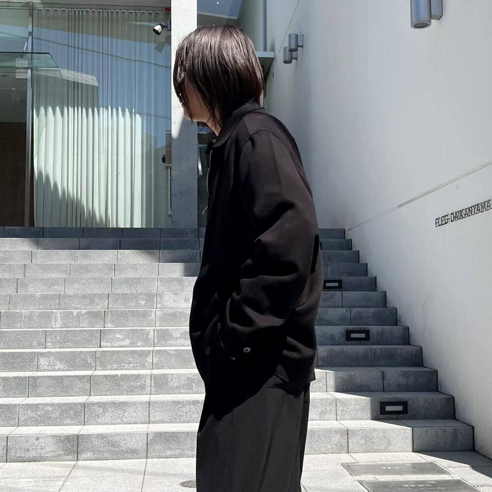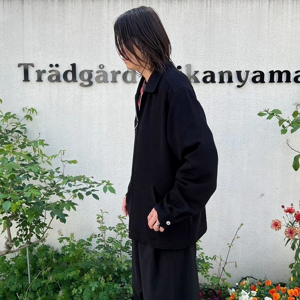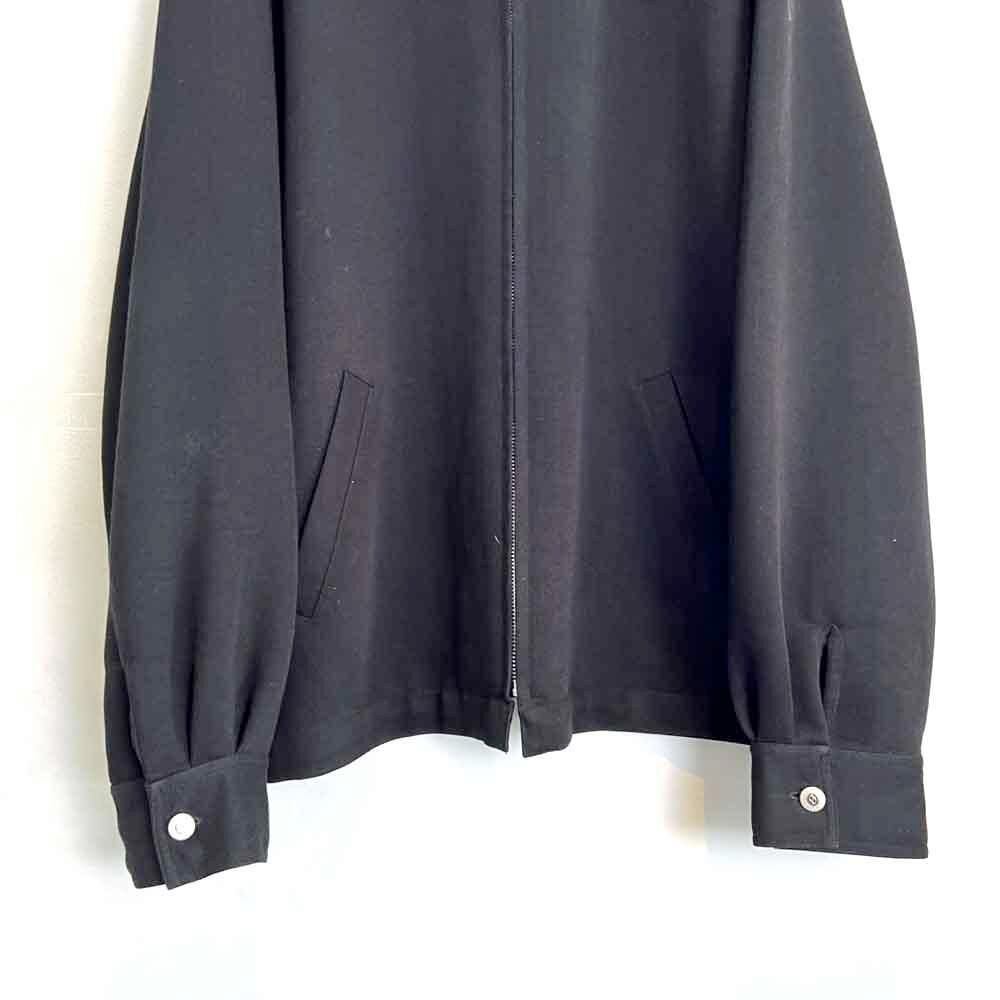 This 90s-style drizzler jacket is made of rayon and polyester, offering a soft, lightweight feel with a flowing drape. Its light and airy feel makes it perfect as a spring outer layer. The simple design and easy-to-match black color, along with the comfortably relaxed fit, make it a truly unique piece.