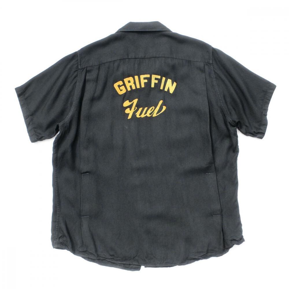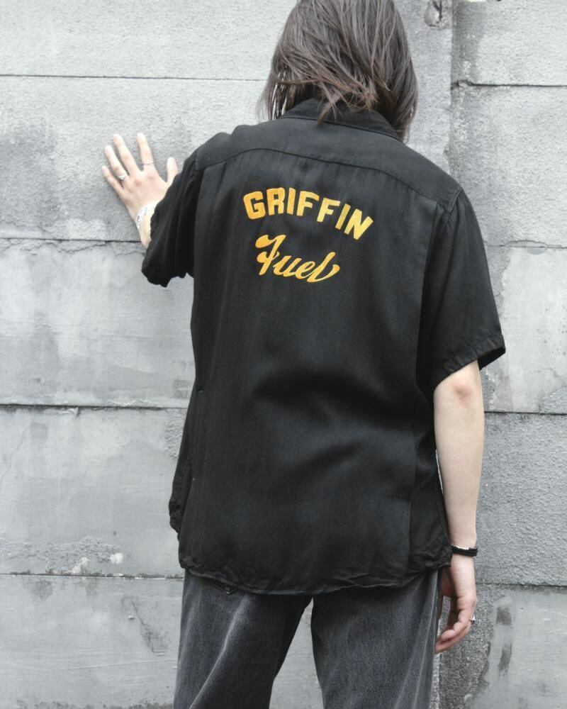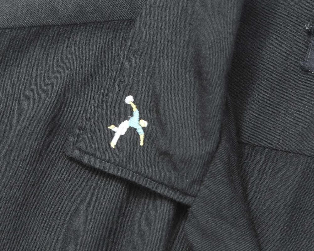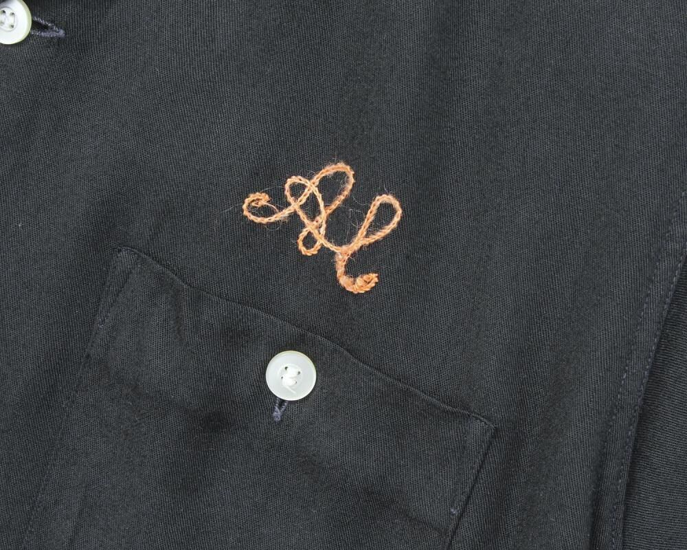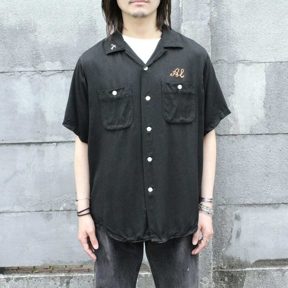 A King Louie bowling shirt from around the 1960s. Made from rare black rayon gabardine fabric, it has a rugged and solid look. The simple embroidery and flock print give it a cool yet minimalist feel. Its a size L with a good amount of room and a comfortable, relaxed silhouette. As it is a vintage item, there may be some signs of age-related deterioration. Please check the photos and understand the characteristics of vintage items before purchasing.