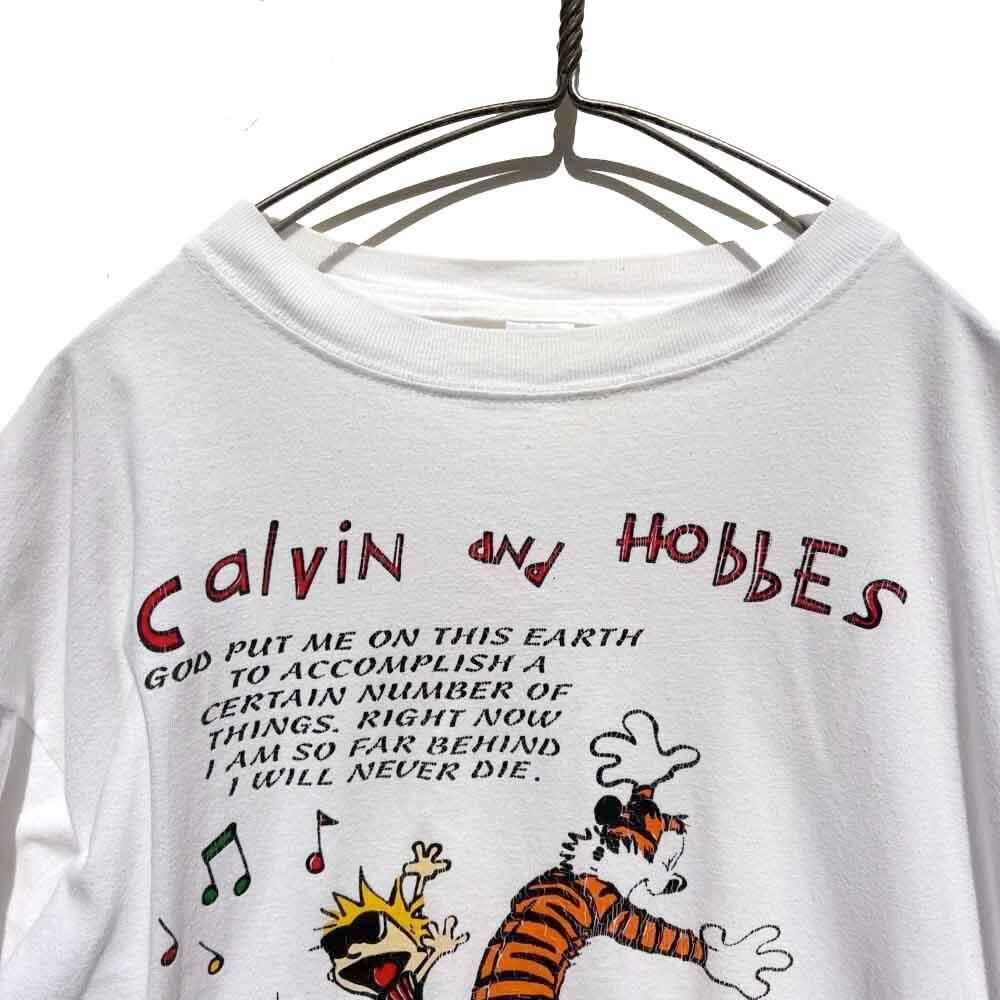 The artwork is striking, featuring sarcastic text typical of Calvin and Hobbes printed on the front, and graphics that exude a nostalgic and warm atmosphere.