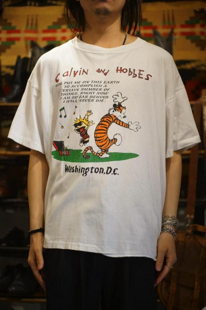 This is a souvenir T-shirt from Washington, DC, featuring the American newspaper comic strip Calvin and Hobbes from the 1990s.