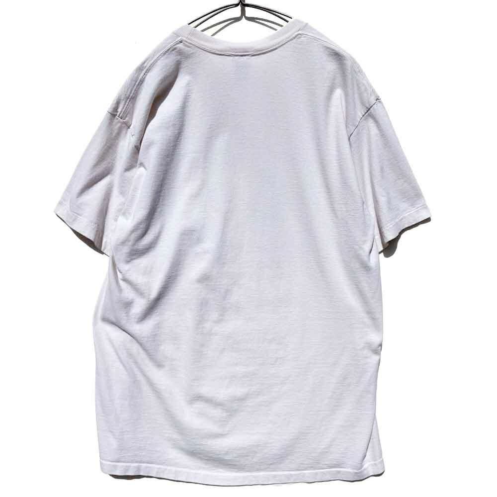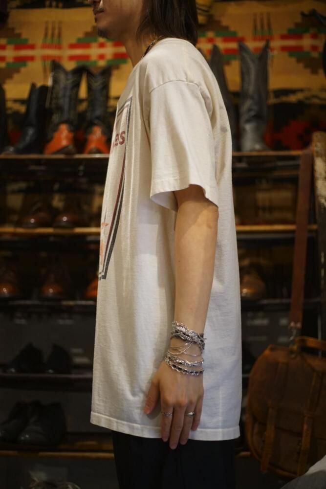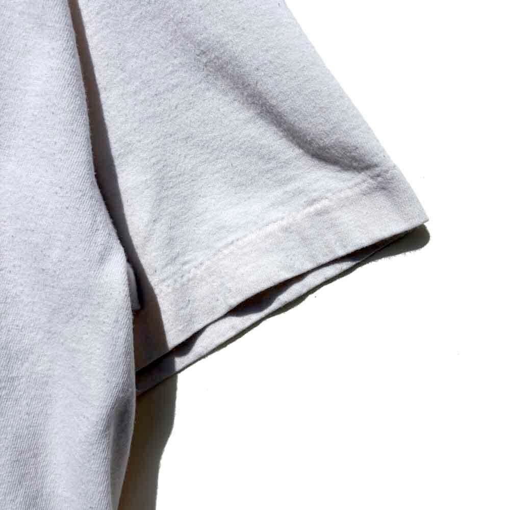 Made from 100% cotton, this garment boasts a smooth, natural texture, and the subtly faded, off-white body, developed over time, exudes a vintage presence.