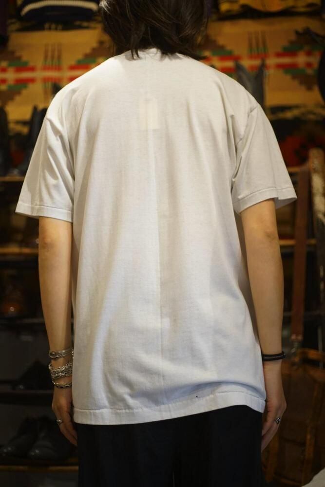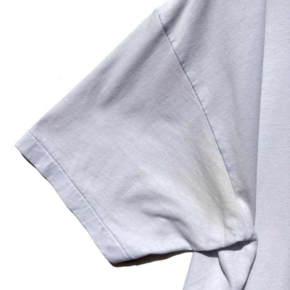 The supple 50/50 cotton-polyester fabric has a natural feel, and the subtly faded white body, developed over time, gives this piece a vintage presence.