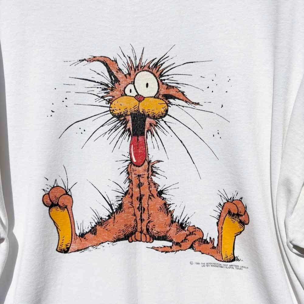 Made in the USA, NATIONAL FIFTY-FIFTY body, with 1986 THE WASHINGTON POST WRITERS GROUP copyright, single stitching on both sleeves and hem.