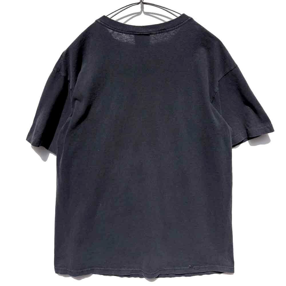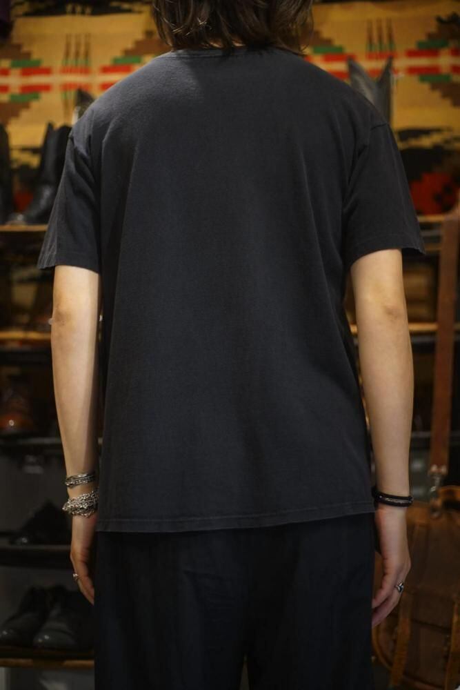 The smooth, flowing fabric of 100% cotton and the faded black body, acquired over time, exude a vintage aura.