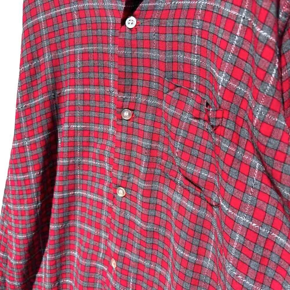 The meltingly soft drape, a characteristic of vintage rayon that is difficult to replicate in current products, and the vibrant yet deep red base body exude an aura that is unique to vintage items.
