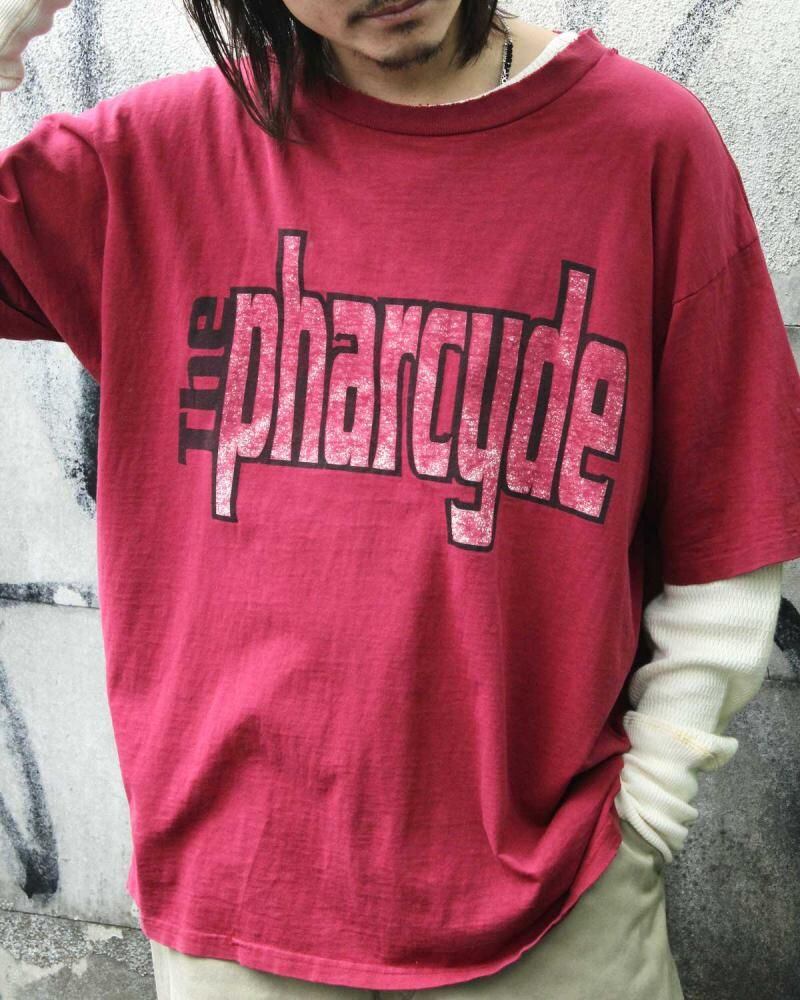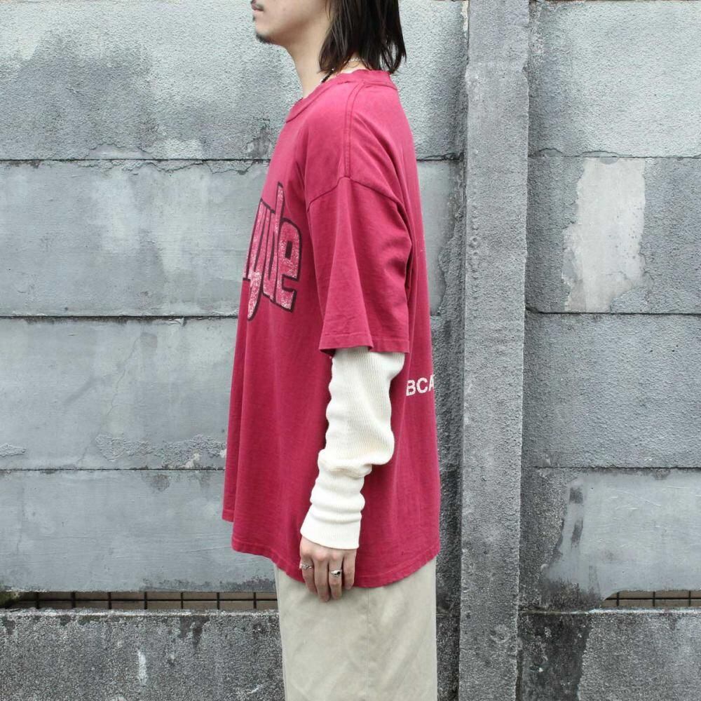 This is a promotional T-shirt released in 1995 for the album LABCABINCALIFORNIA. It boasts a great aged look, a size approximately 2XL that evokes a sense of culture, a beautiful maroon color, and a unique, faded print. As it is a vintage item, there may be some signs of age-related deterioration. Please check the photos and understand the characteristics of vintage items before purchasing.