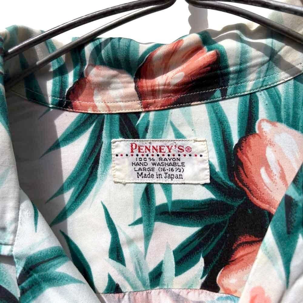 This is a rayon Aloha shirt made by Penneys, from around the 1960s.