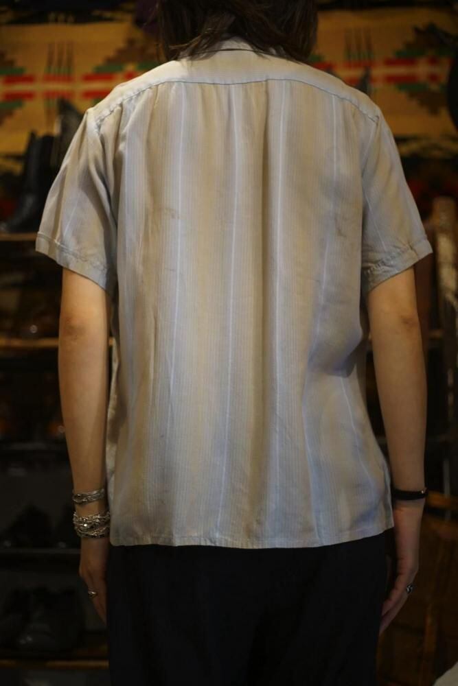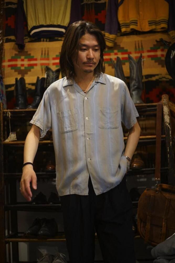 This garment possesses the melting drape and relaxed feel characteristic of vintage rayon, which is difficult to reproduce in current products. The double patch pockets add a touch of workwear style, while the classic boxy silhouette pulls the whole look together.