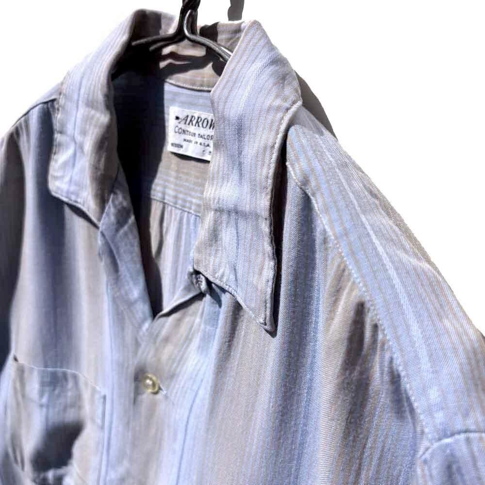 This is an open-collar rayon shirt made by ARROW, from around the 1960s.