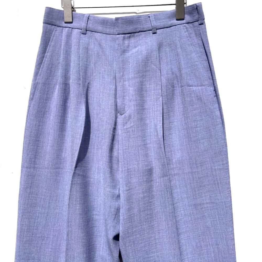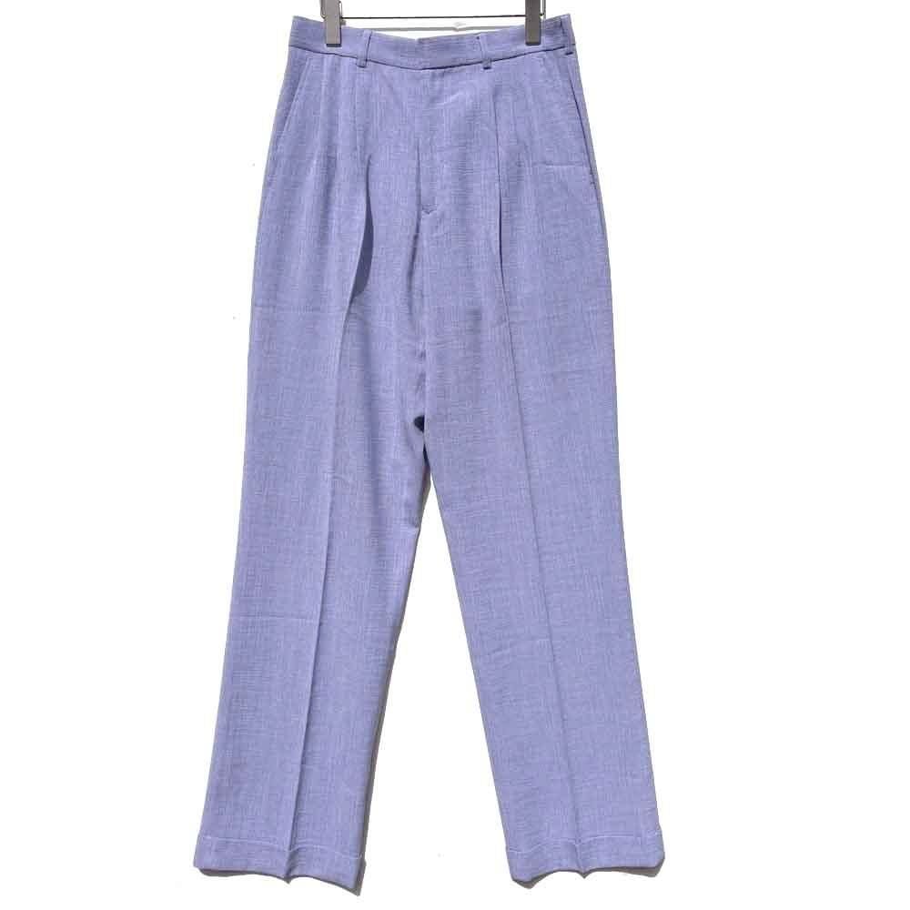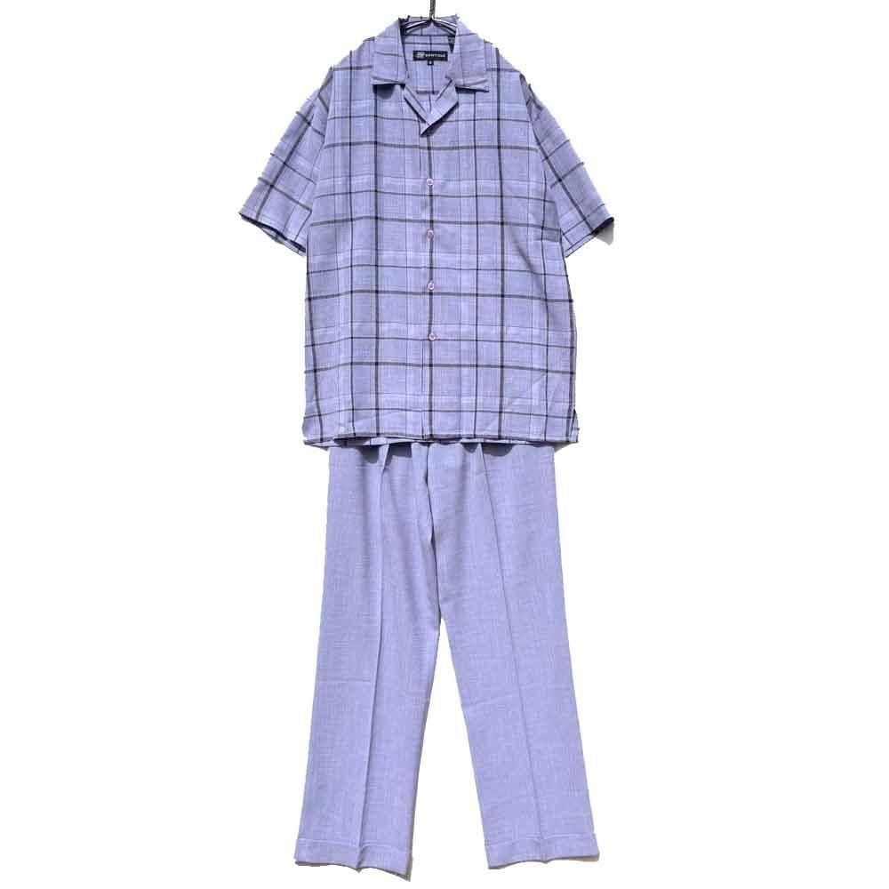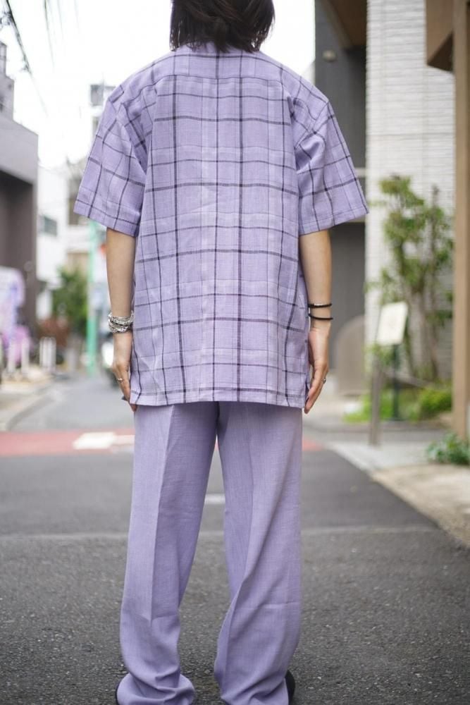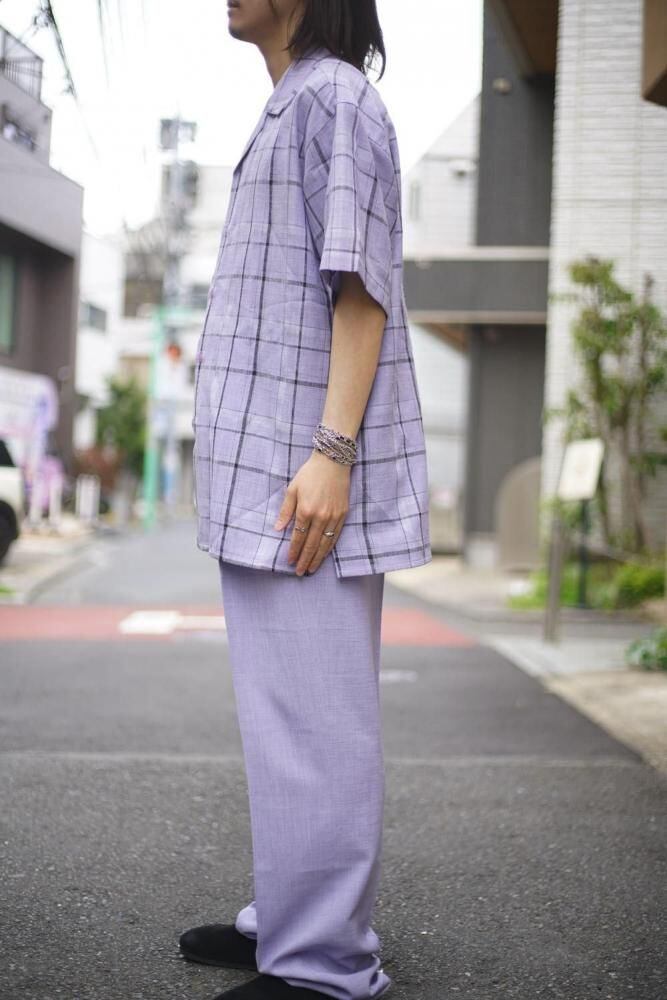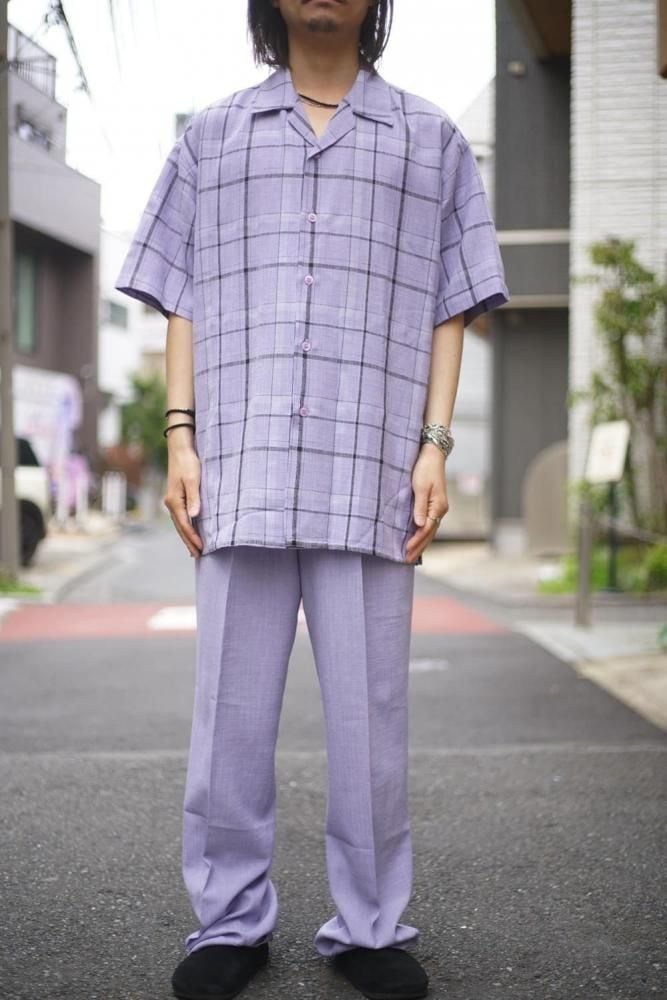 The shirt has an open collar and a resort-like boxy silhouette, while the pants are three-pleat trousers with a dressy and elegant silhouette.