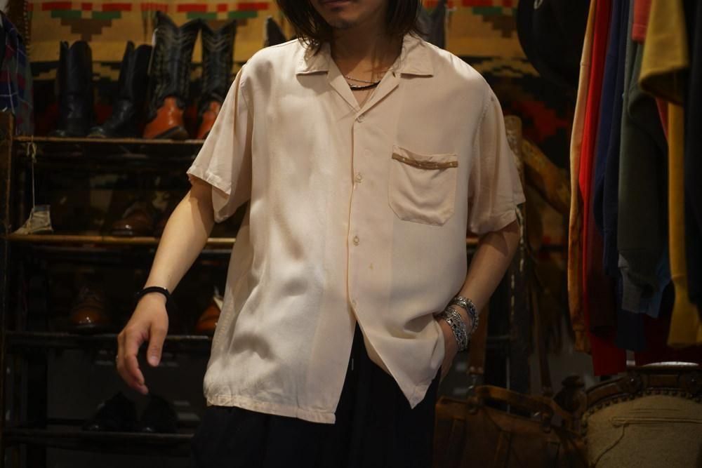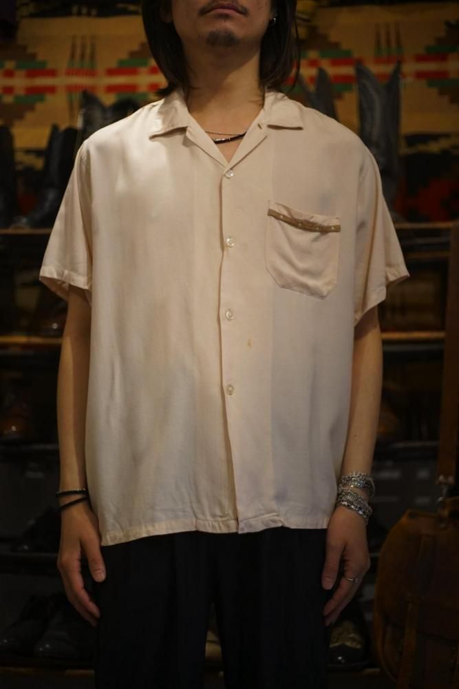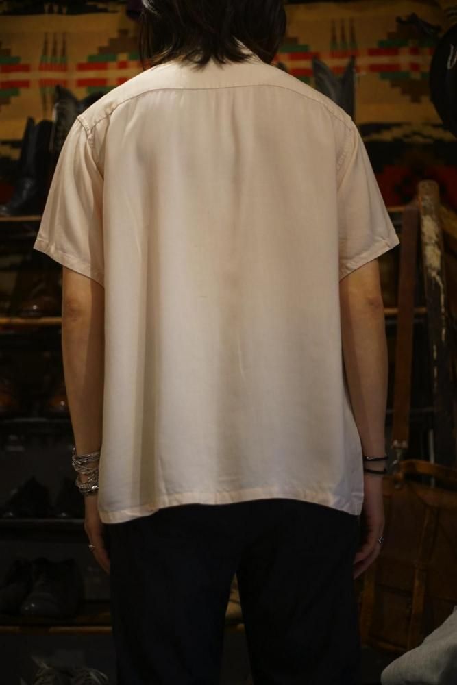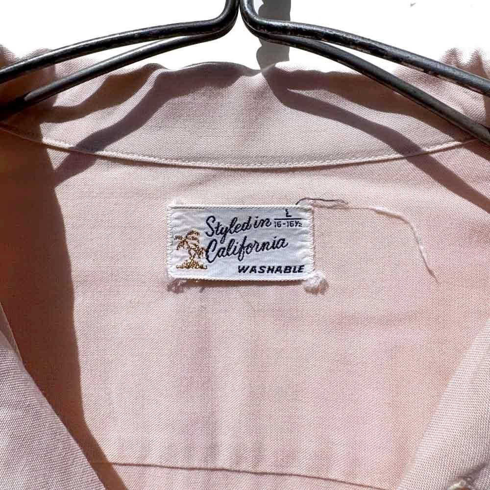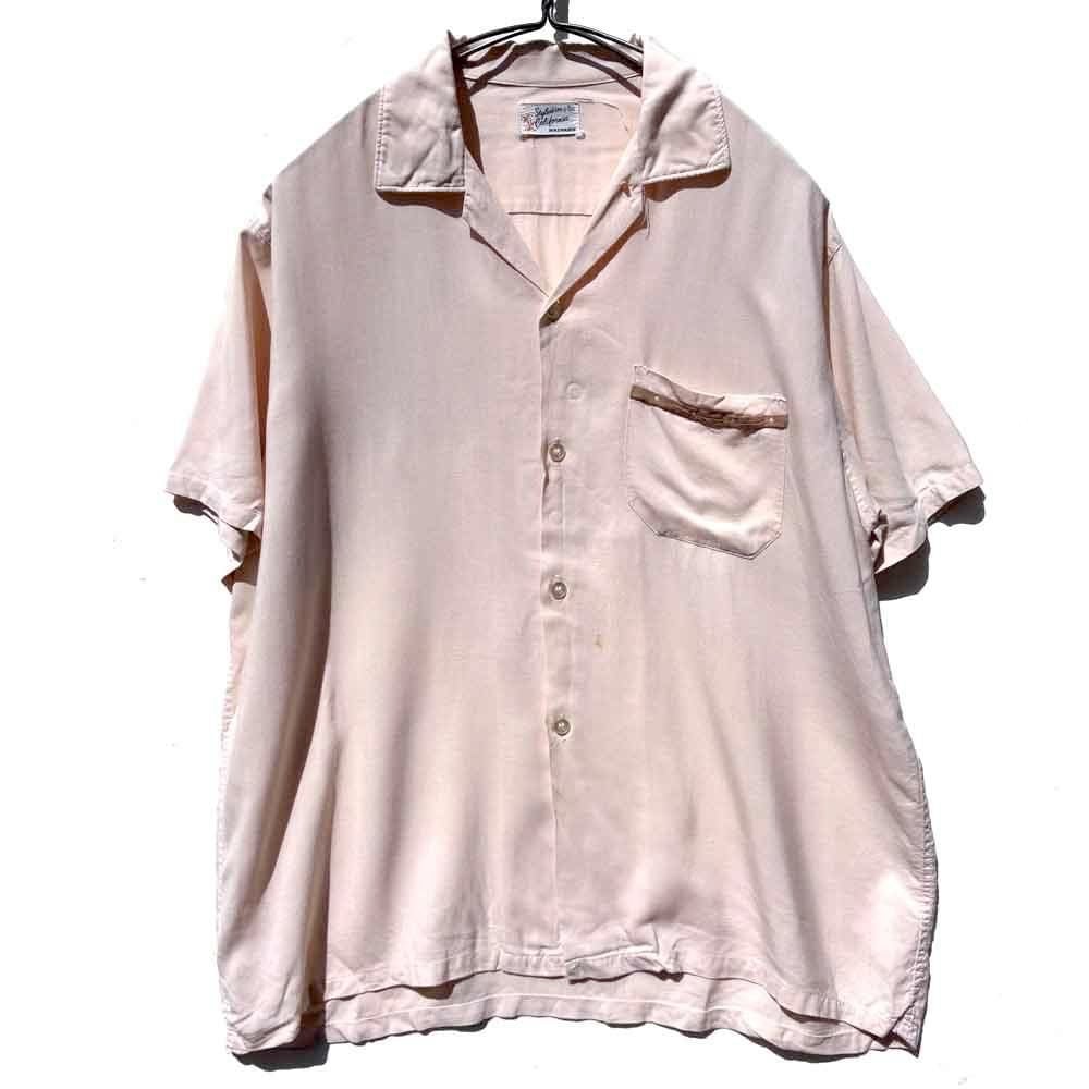 This is an open-collar rayon shirt from around the 1960s.