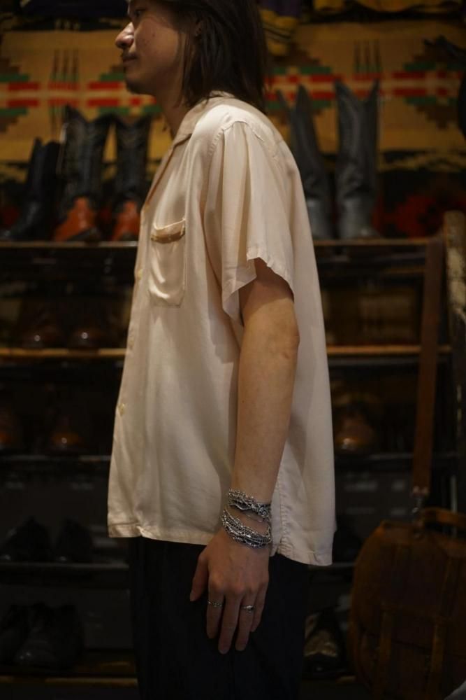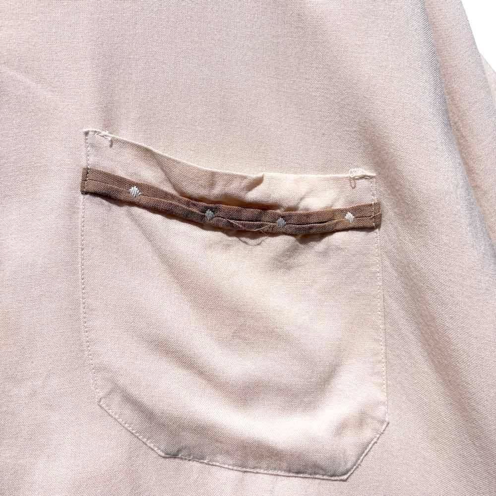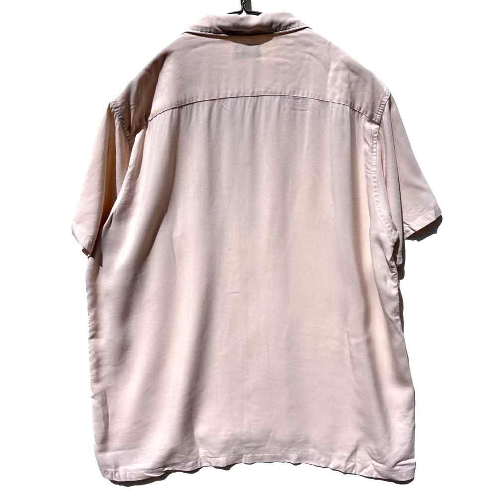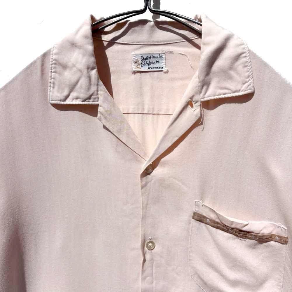This is an open-collar rayon shirt from around the 1960s.