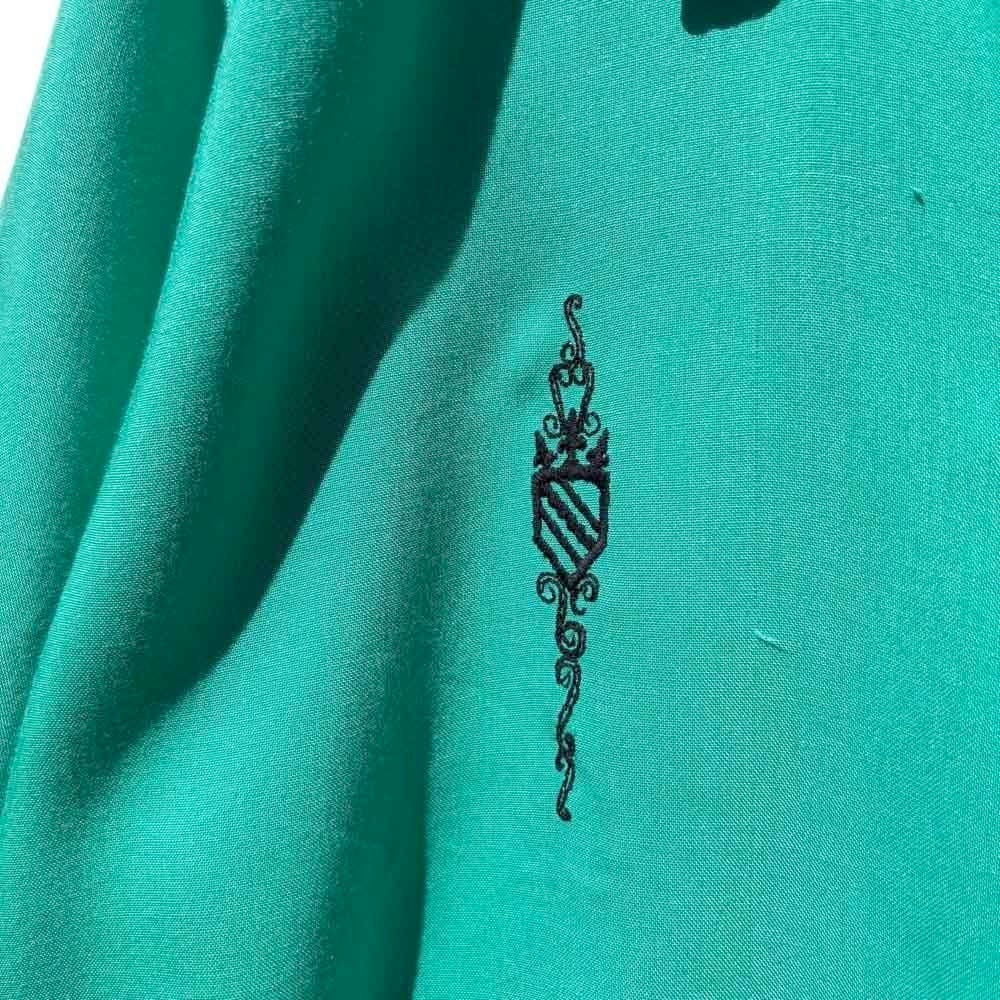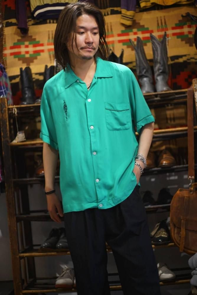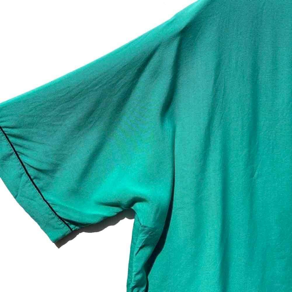 This garment possesses the meltingly soft drape and relaxed feel characteristic of vintage rayon, which is difficult to replicate in current products. The classic boxy silhouette gives it a polished look.