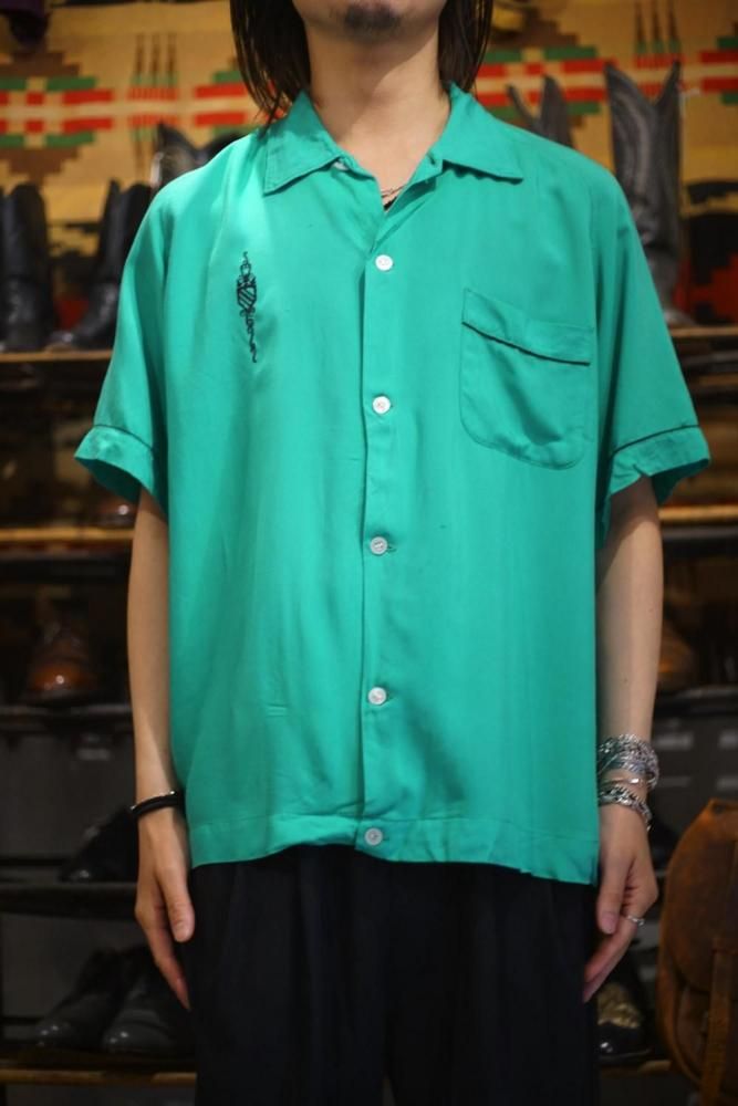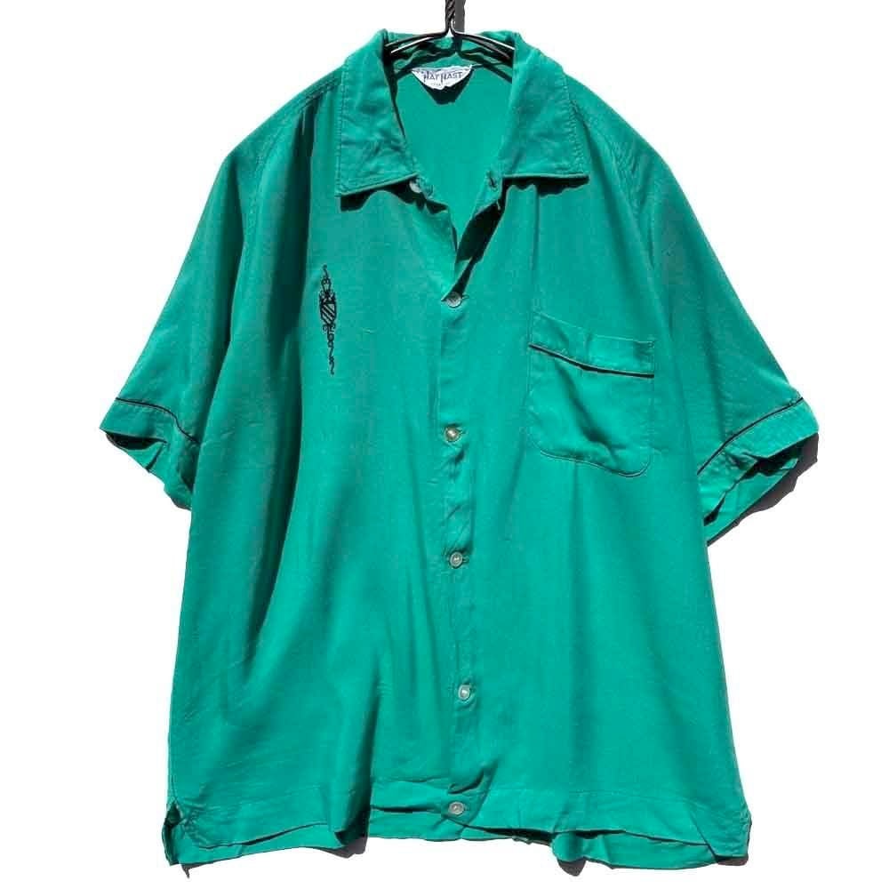 This is an open-collar rayon shirt made by Nat Nast, dating from around the 1960s.
