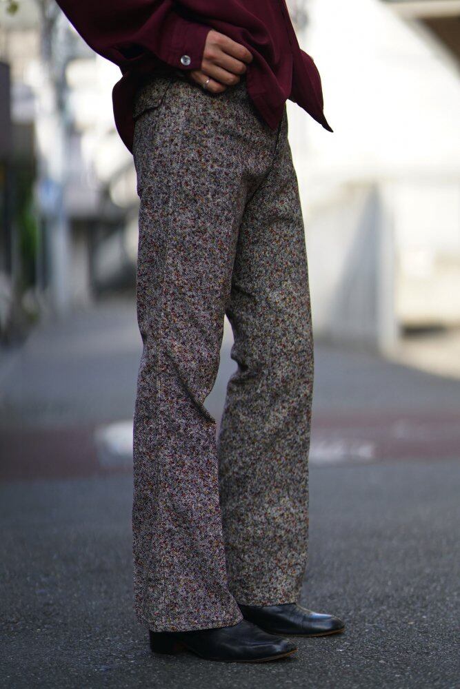 Bell-bottom pants from the 1970s. A playful 70s textile with a NEP pattern printed on a light corduroy fabric made of 100% cotton. The flared silhouette that spreads from the knees with a shallow rise makes you feel the hippie culture of the time. The actual size of the waist is 83 cm, but since the rise is shallow, it will be about 30 inc in size. Since it is dead stock, it is in a very beautiful state. Since it is old, it rarely deteriorates over time. Please note that after checking the photo.