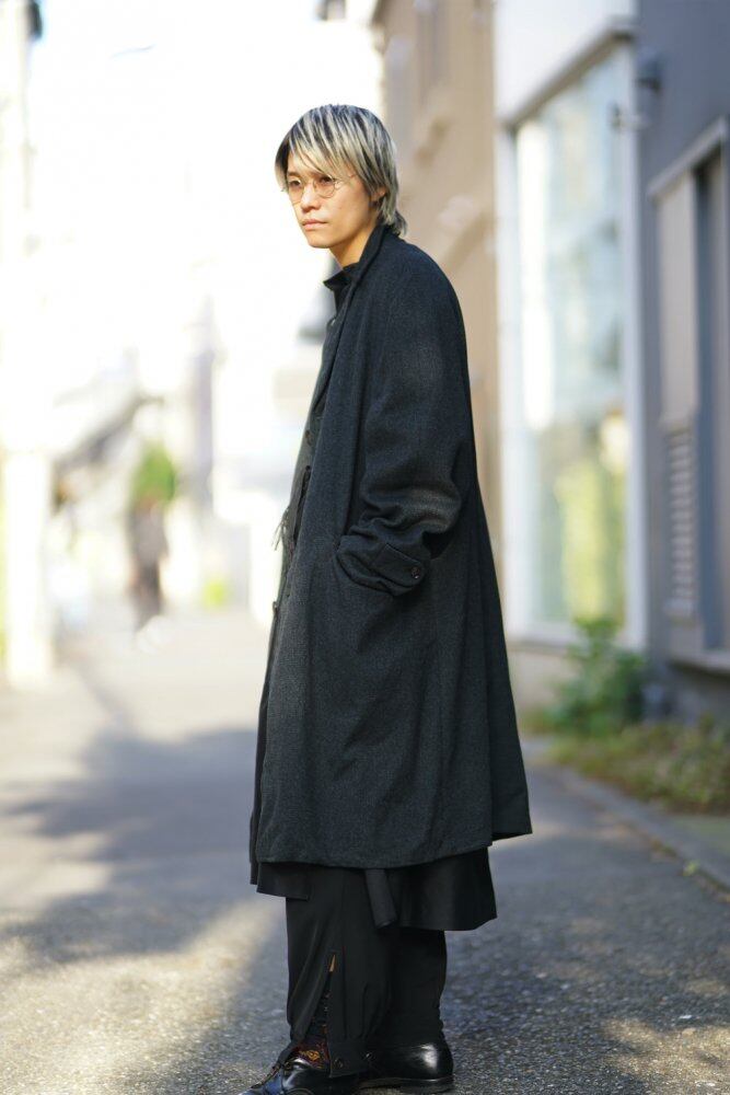 A vintage wool coat from the 1960s. The tailoring made in detail conveys the skill of the tailor. The tailored hair is deliberately removed from the pad and hair core and washed in our shop, giving it a light and soft texture that contains air. The deep dark tone coloring using various threads such as green, black and blue, and the tight herringbone tweed fabric have a luxurious texture. You can enjoy the soft lines along the shoulders and the relaxed feeling of falling due to the softness of the fabric while retaining the mannish of the box silhouette of the time. Since it is an old product, it rarely deteriorates over time. Please check the photo and purchase after acknowledging the characteristics of vintage.