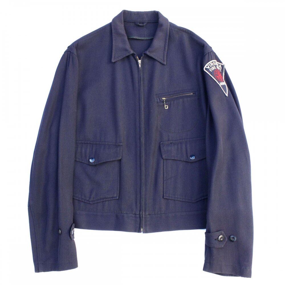 Around the 1950s, it is a uniform jacket for firefighters. Gabardine fabric made of wool and rayon is used for a rugged look. Navy discolored over time because it could not be dyed strongly, and it is called 茄子 dark blue, which is a deep color unique to this age. A short-length zip-up type silhouette that looks neat while having a moderate amount of space. Work jackets of this age are in good condition subjectively. Since it is an old product, it rarely deteriorates over time. Please check the photo and purchase after acknowledging the characteristics of Vintage.