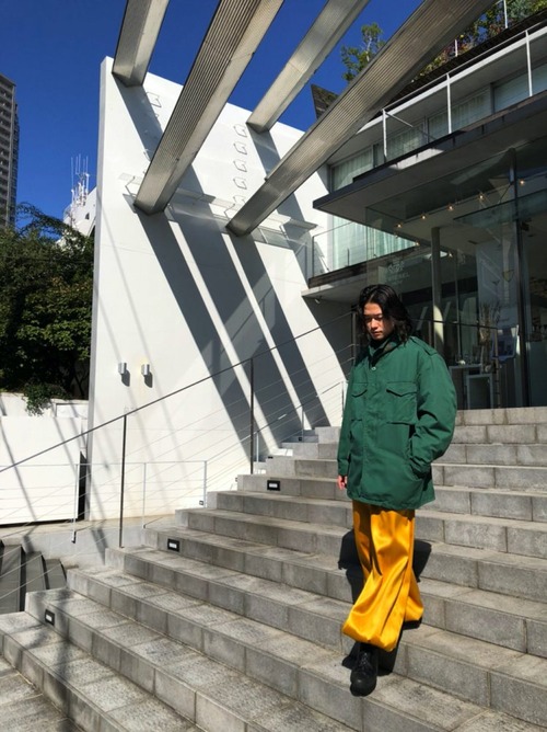 M-65 type easy-to-use jacket X-LARGE size that you can wear comfortably in a nice one with bright green color suppressing the trendy colors of this season