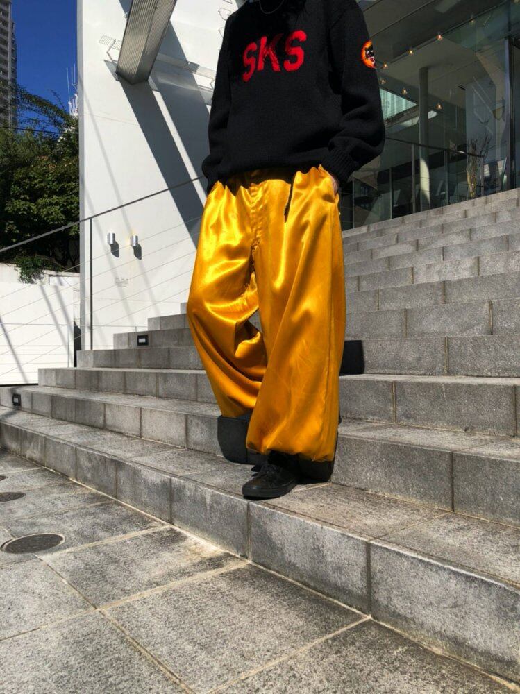 Rayon satin mustard color that catches the eye with its powerful and loose balloon silhouette Vintage pants Waist size is 35 inches (90 cm) that we would like to recommend to those who are looking for a special one that is different from people