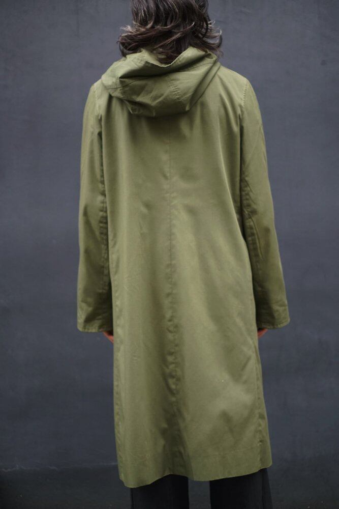 Hood toggle coat around the 1980s You can use it in unisex with a neat size balance. The olive green color of the hooded long coat creates an atmosphere like a mods coat.